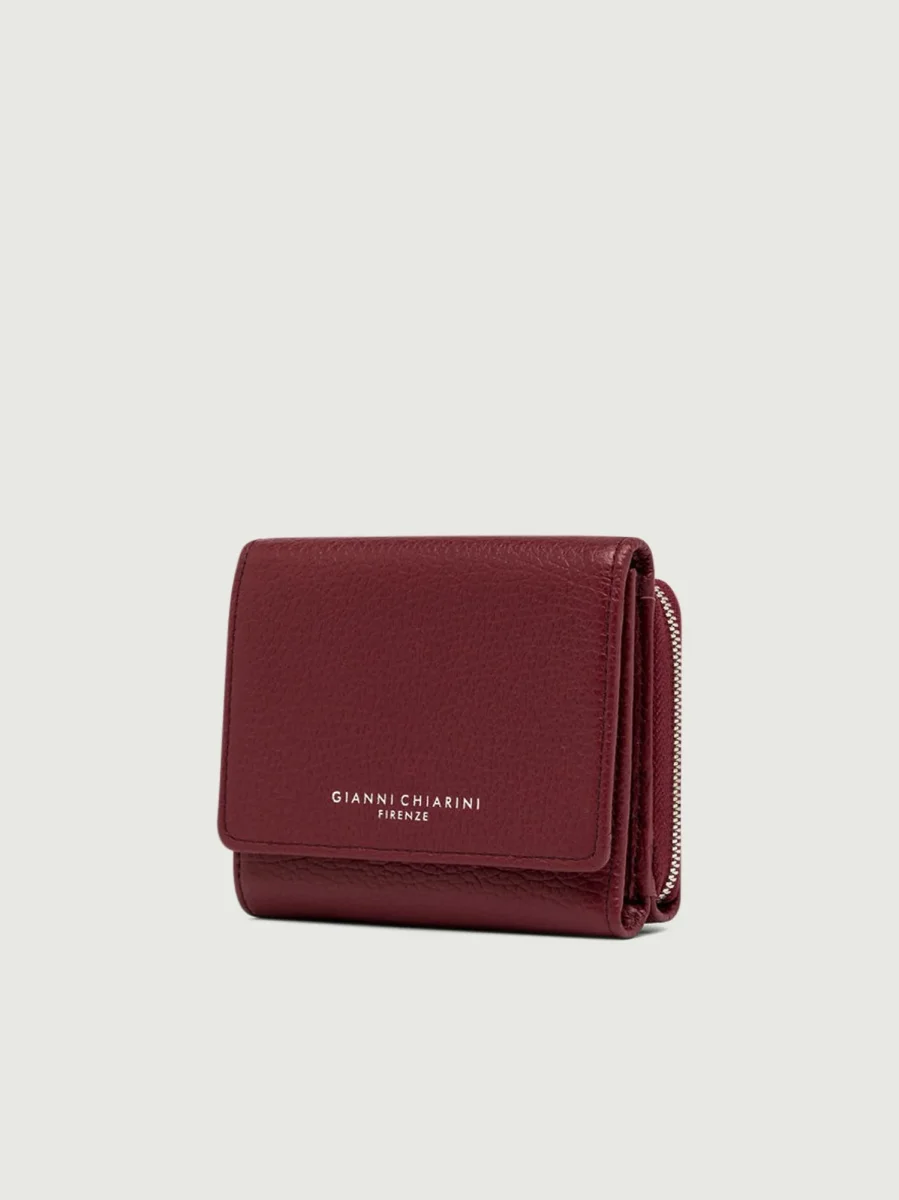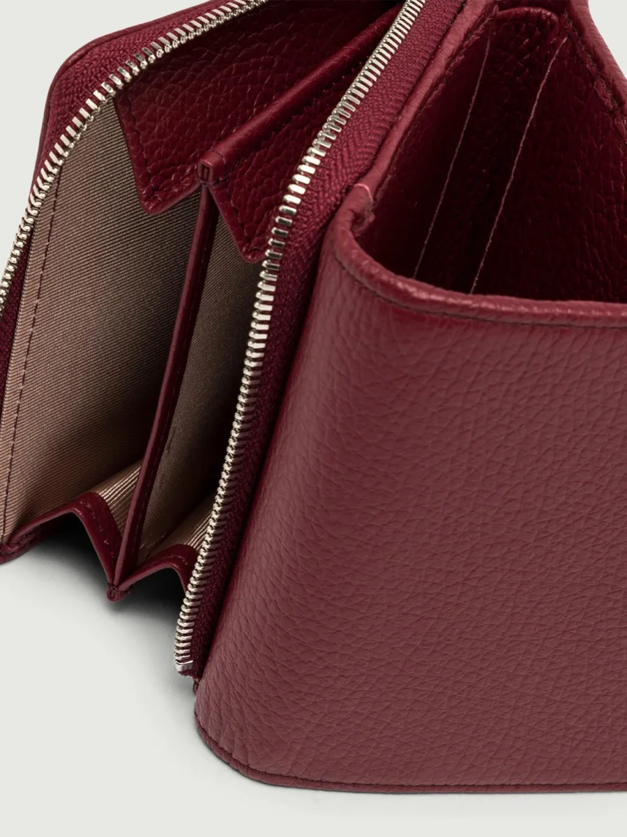 Mini portafoglio in pelle martellata bordeaux