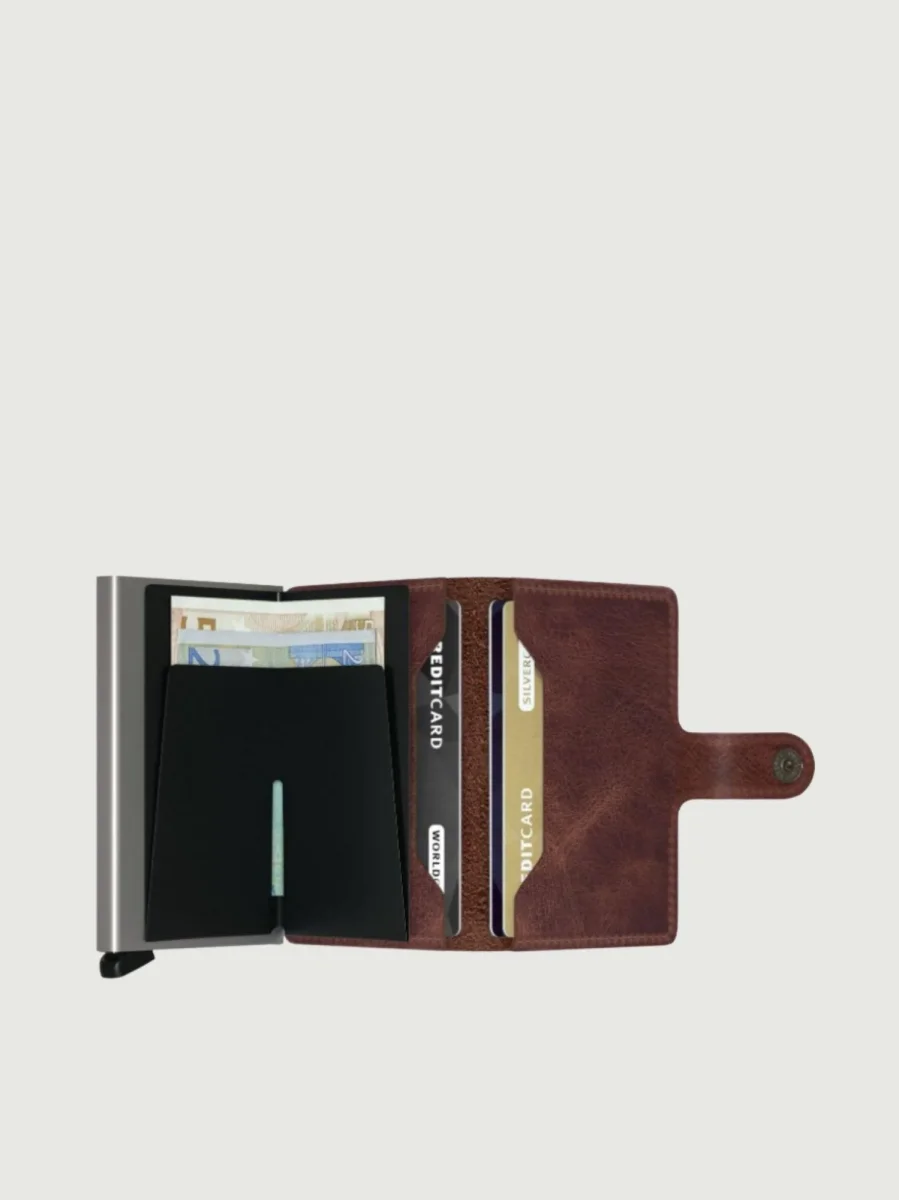 Piccolo nelle dimensioni ma sorprendentemente capiente: il Miniwallet soddisfa tutte le esigenze. Il rivestimento esterno può contenere banconote, scontrini e tessere, mentre il Cardprotector in alluminio consente di estrarre le carte con un semplice movimento, impedendo che si pieghino, si spezzino o che vengano lette senza che ce ne accorgiamo.