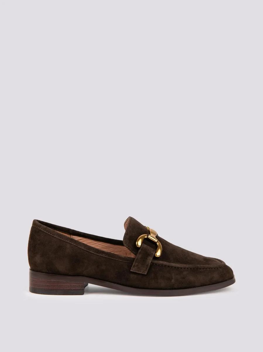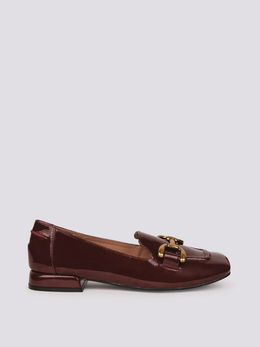 Mocassino in pelle stampata pitone. Tacco spesso alto 6 cm che stabilizza la calzata rendendola più confortevole anche sul lungo periodo. Il dettaglio della doppia fibbia applicato sulla parte frontale è composto da un accessorio in metallo ed è collegato al corpo della scarpa tramite due inserti in pelle in tonalit+á . Profili in rilievo. 100% vera pelle.