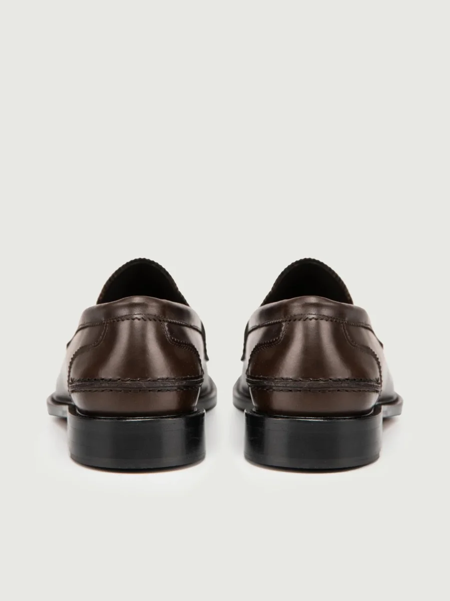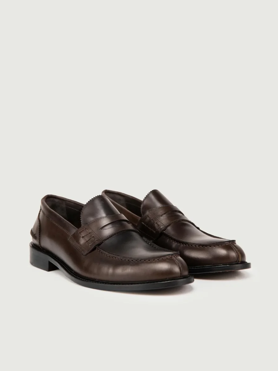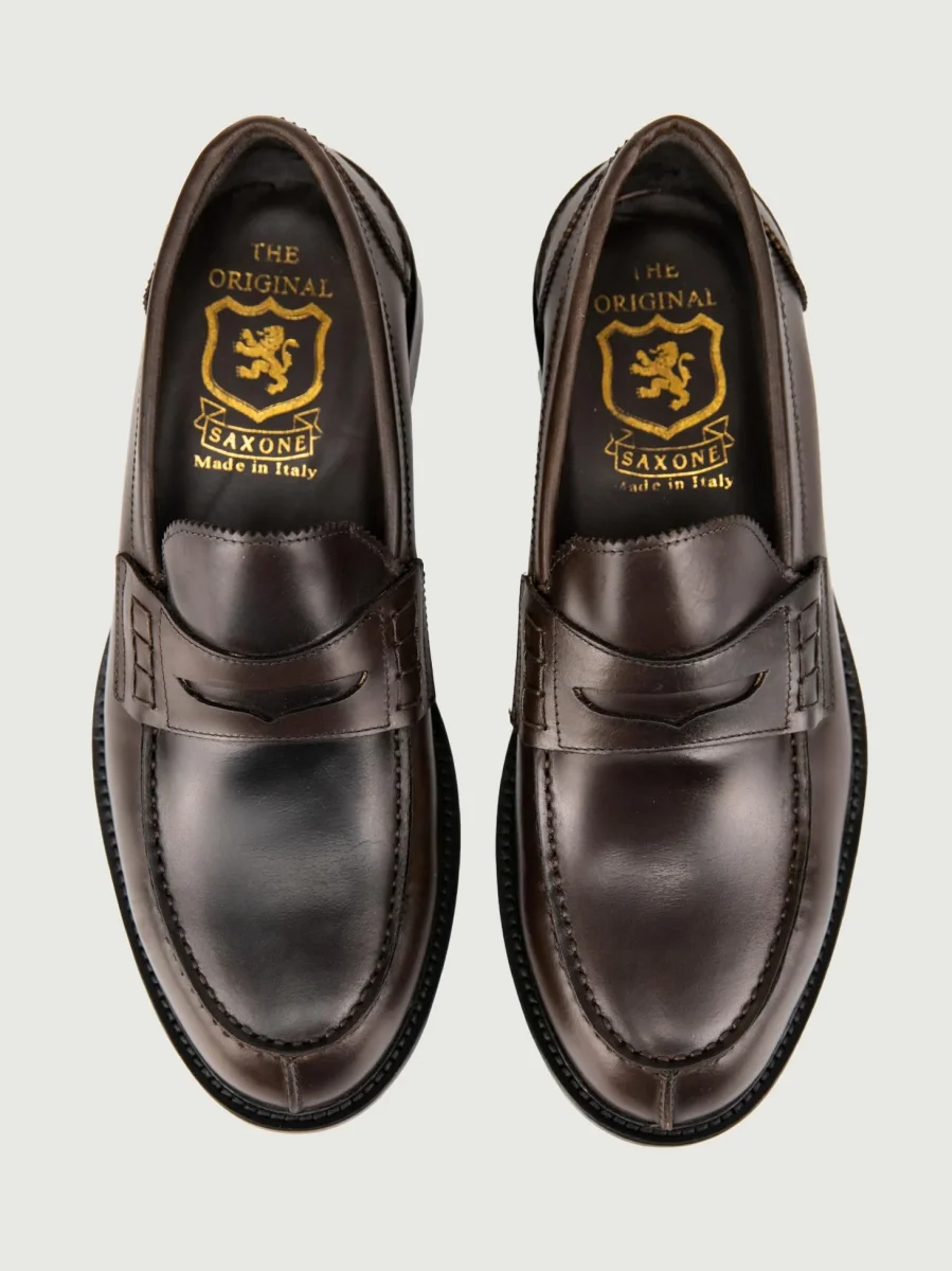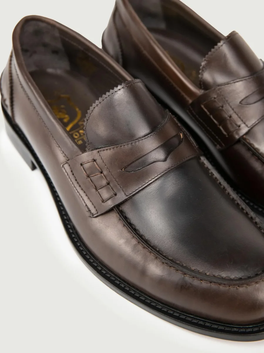 Mocassino Penny in pelle testa moro con dettaglio cuciture in rilievo in tonalità.