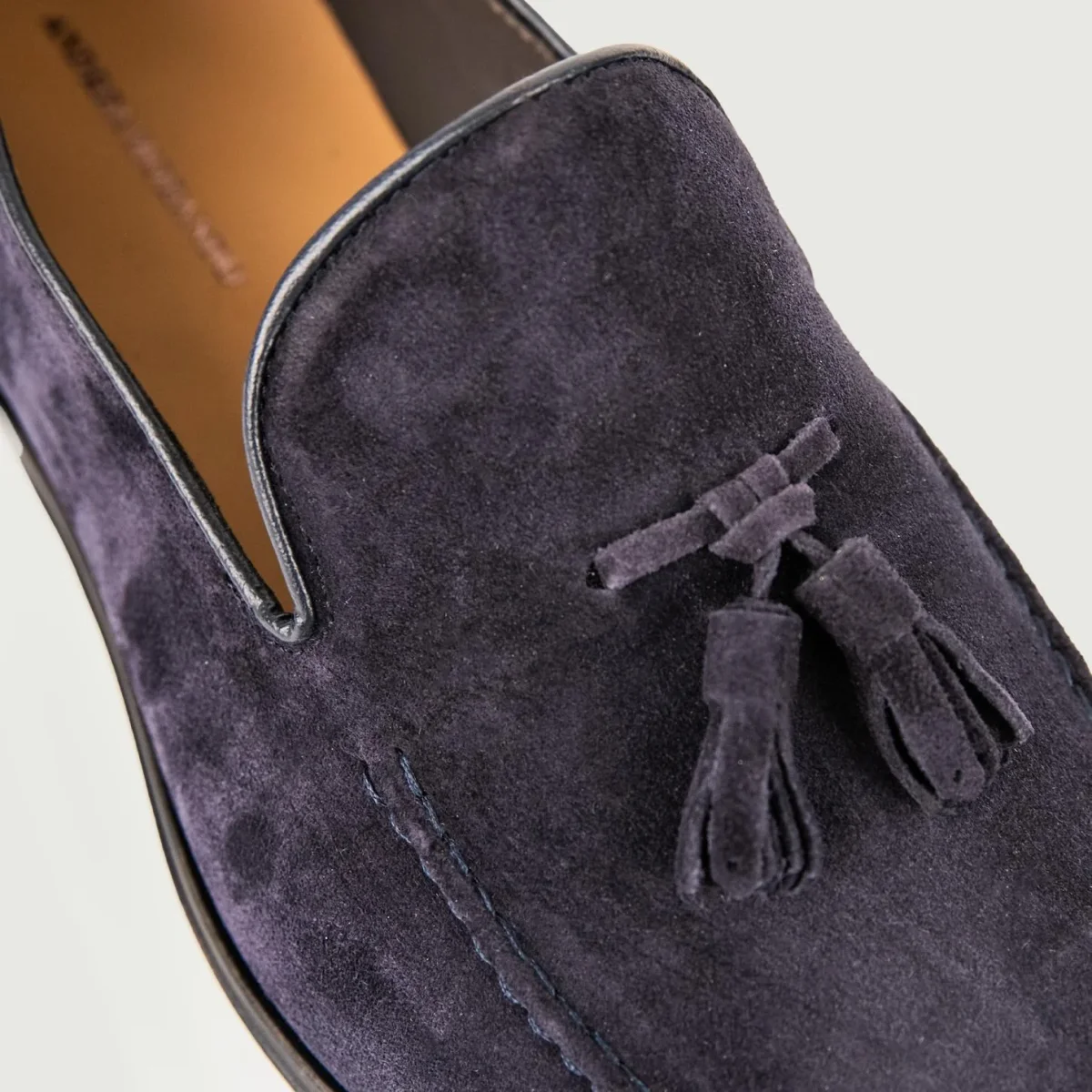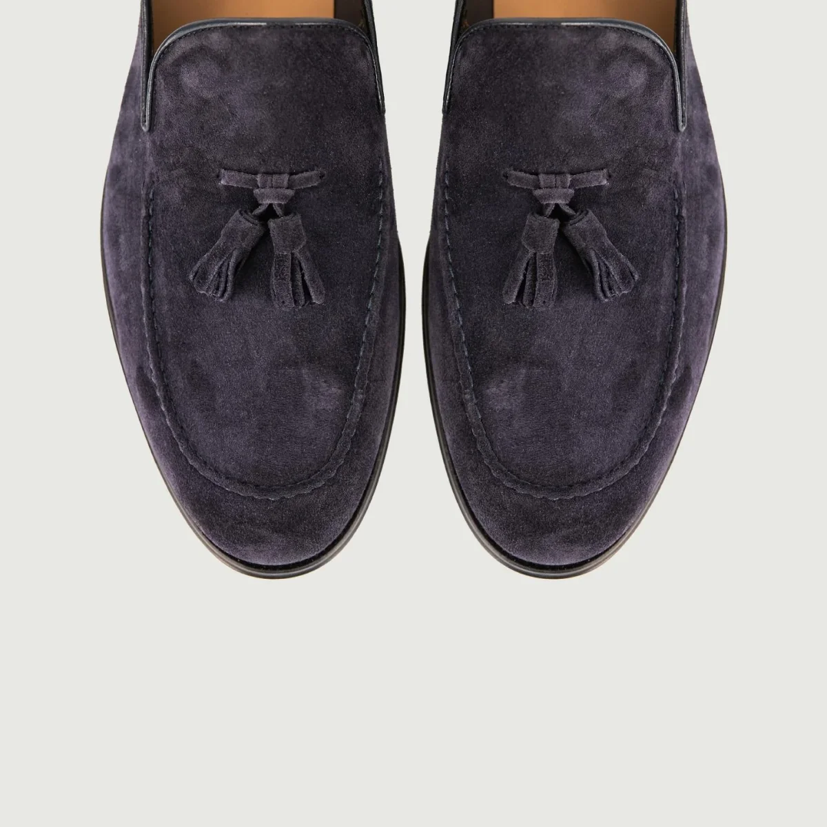 Mocassino con nappine in camoscio con cuciture a vista. Realizzata interamente con pelle di alta qualitá e vero cuoio, questa scarpa è un must-have assoluto per tutti gli uomini che amano vestire in stile dandy. Le cuciture in tonalitá rimangono comunque ben visibili anche ad occhio nudo. Lo scollo del mocassino è profondo abbastanza per permettere al piede di respirare anche nei giorni più caldi. Nappine in tonalitá.