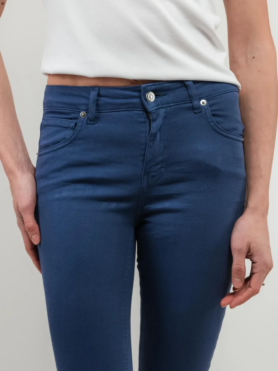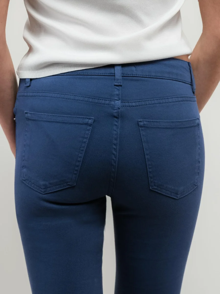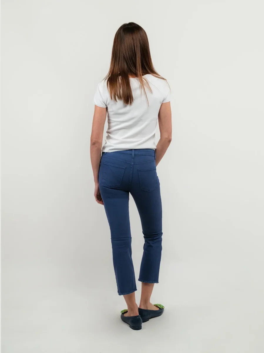 Pantalone 3 tasche a zampa in cotone blu.