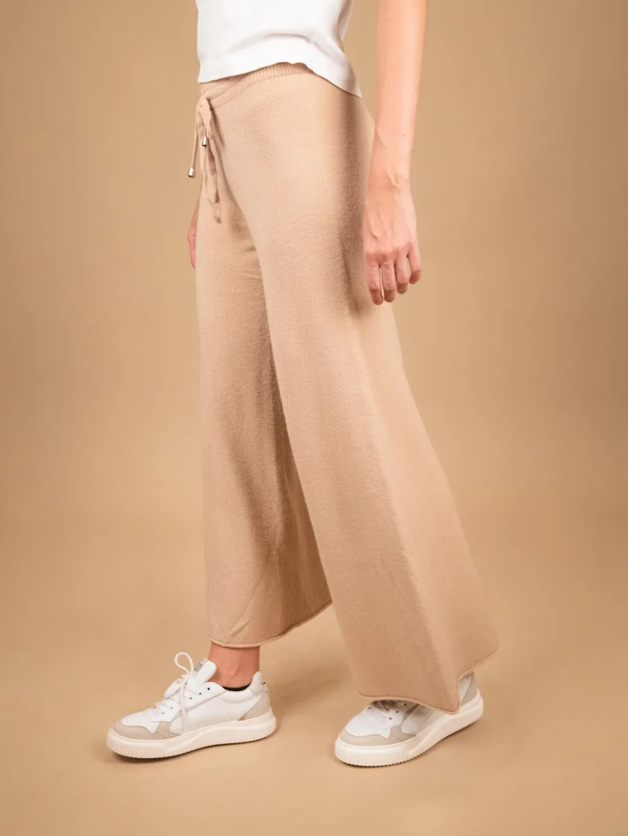 PANTALONE A PALAZZO IN MAGLIA BEIGE