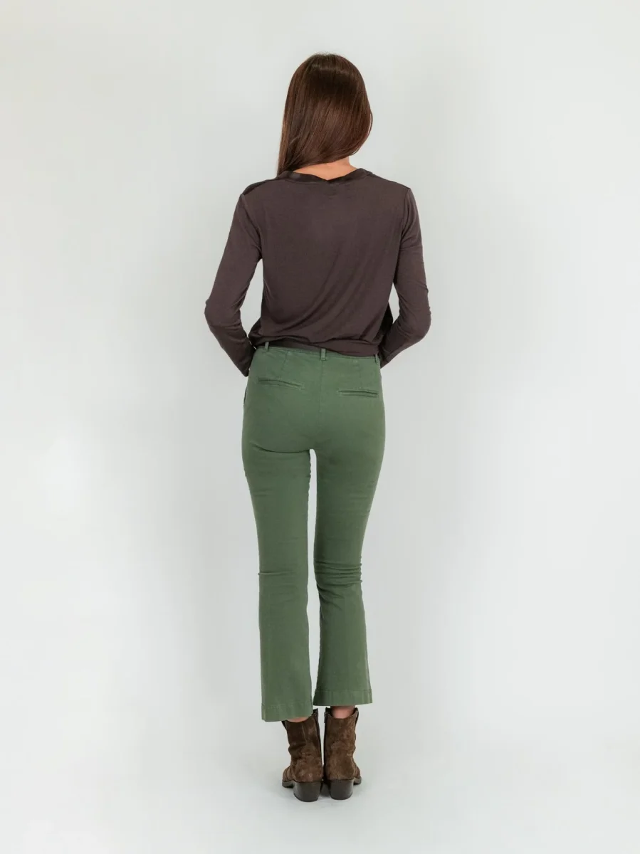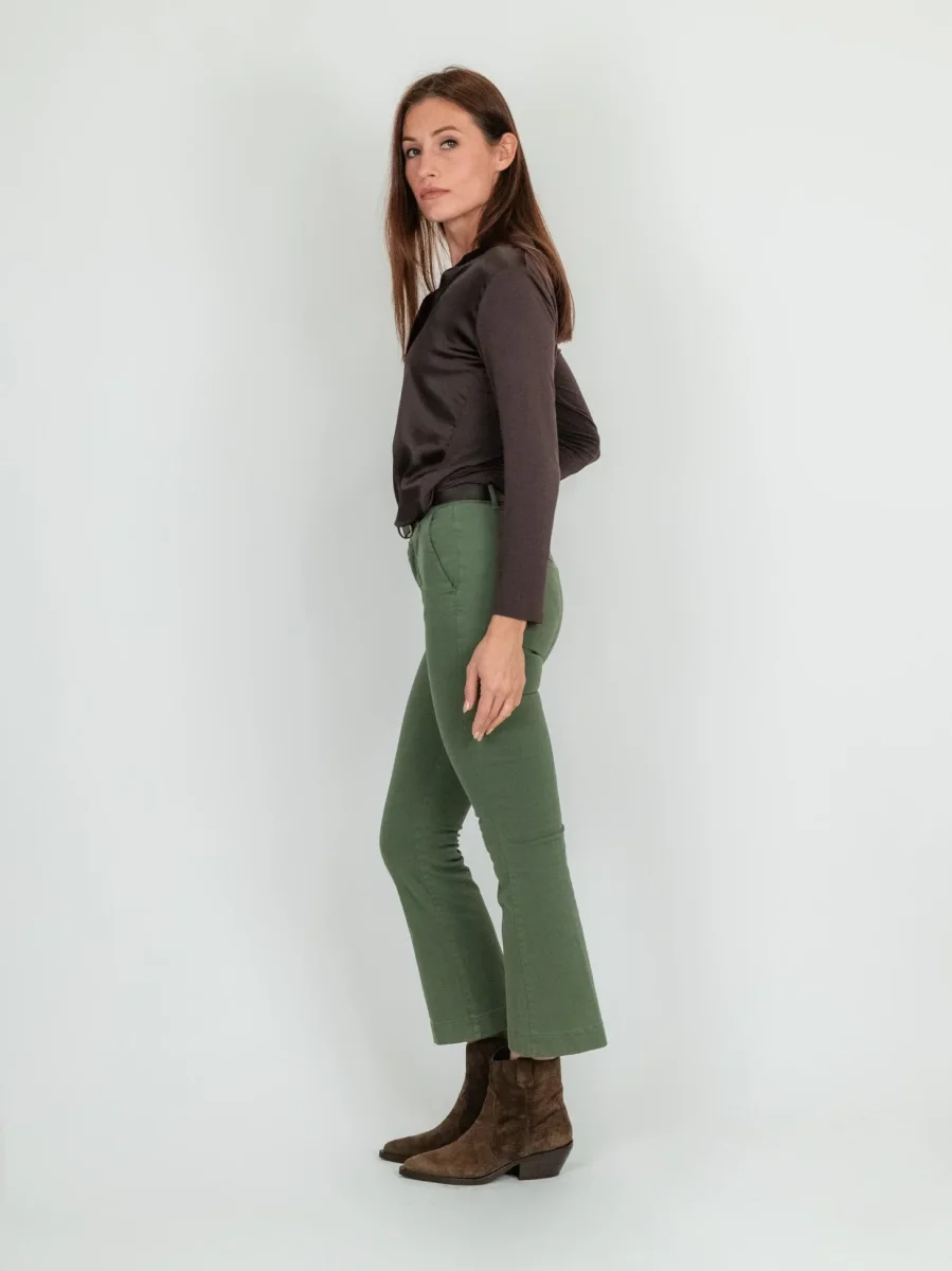 Pantalone a trombetta in cotone color verde salvia.