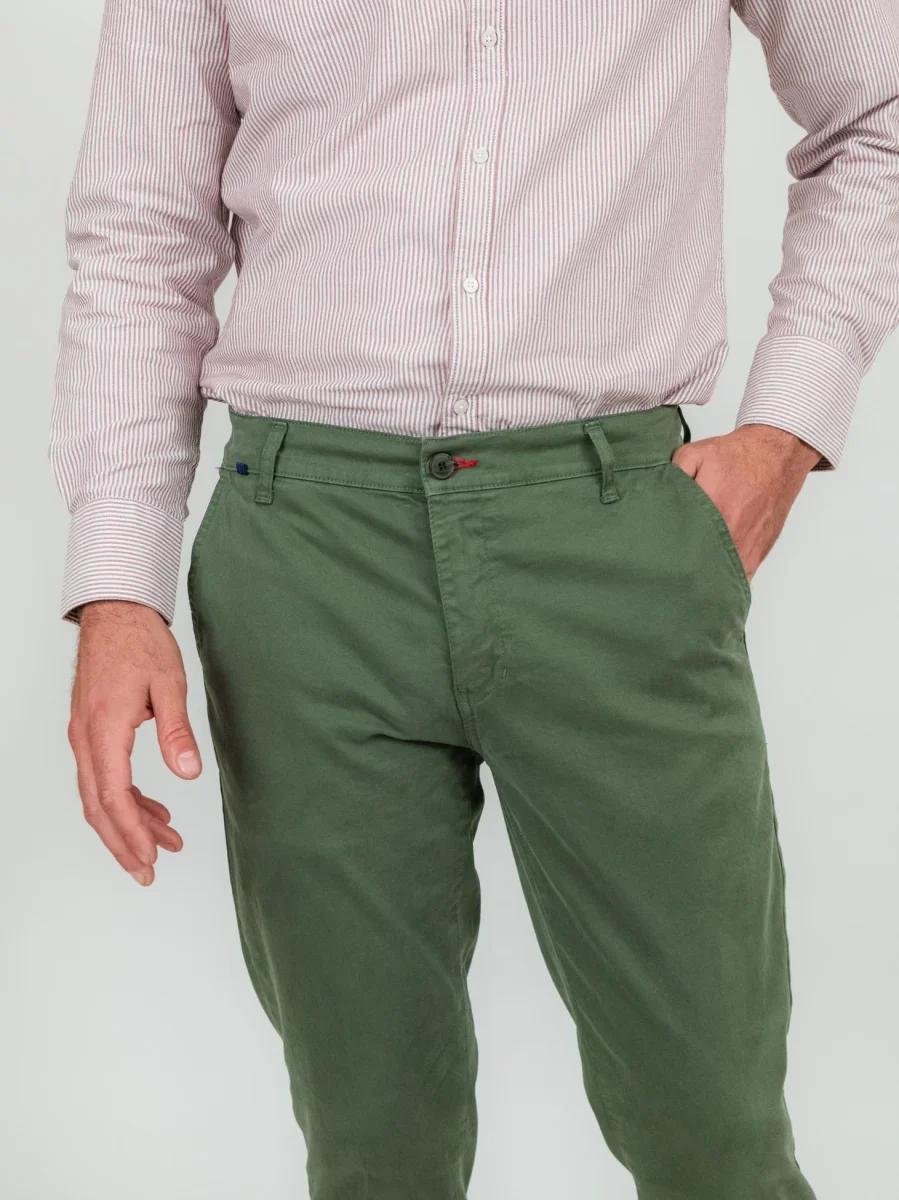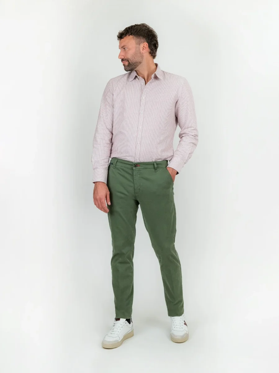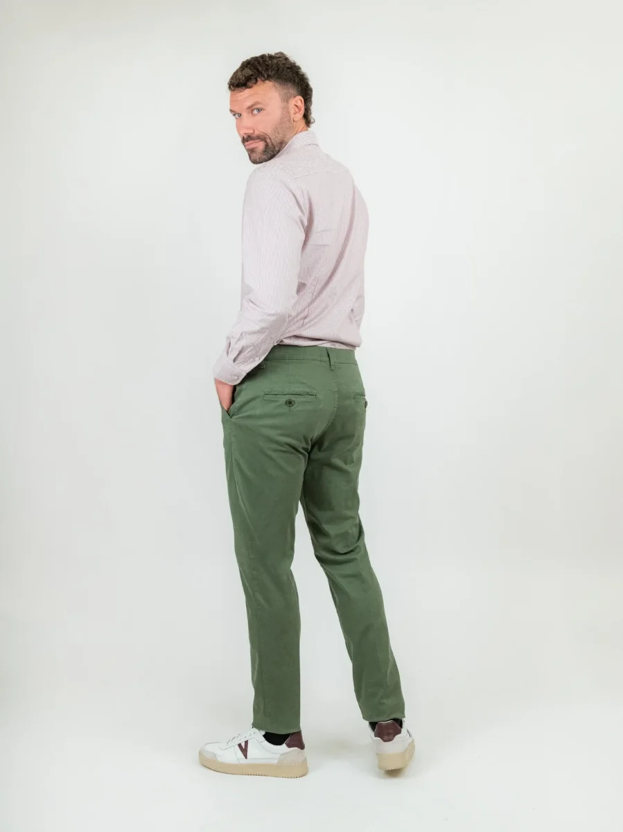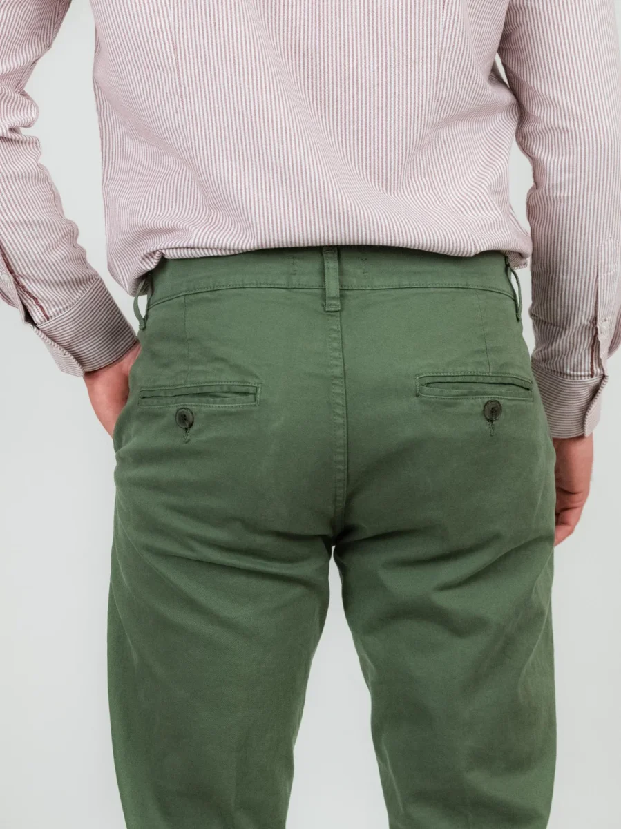 Pantalone chinos in cotone verde militare.