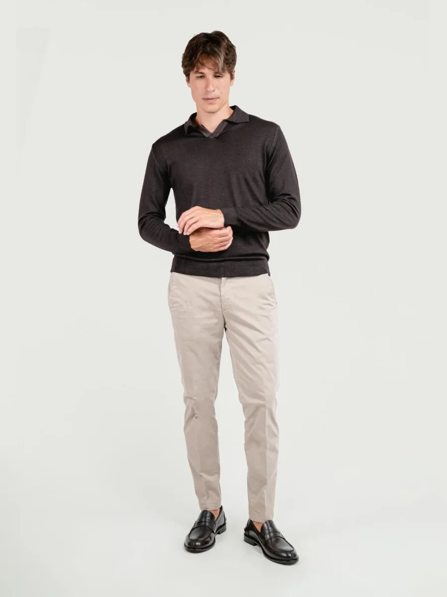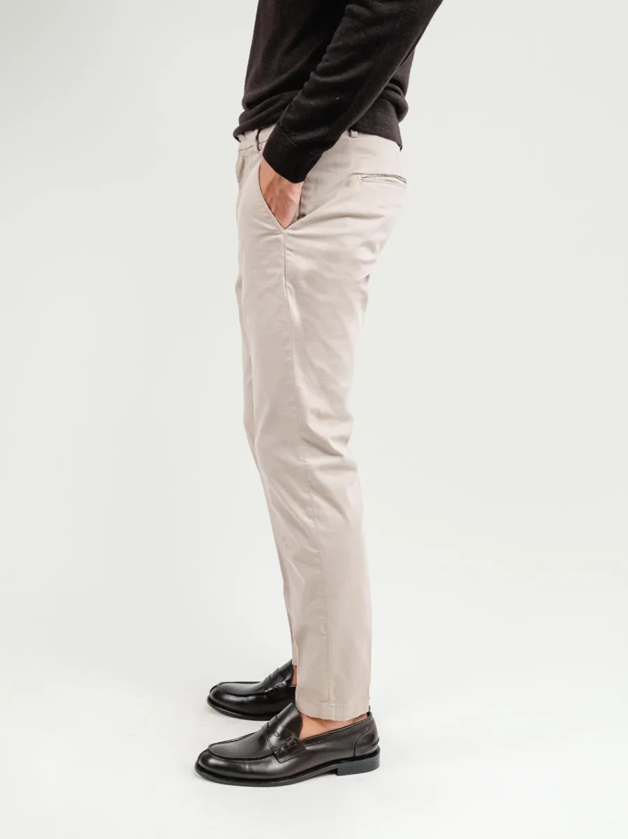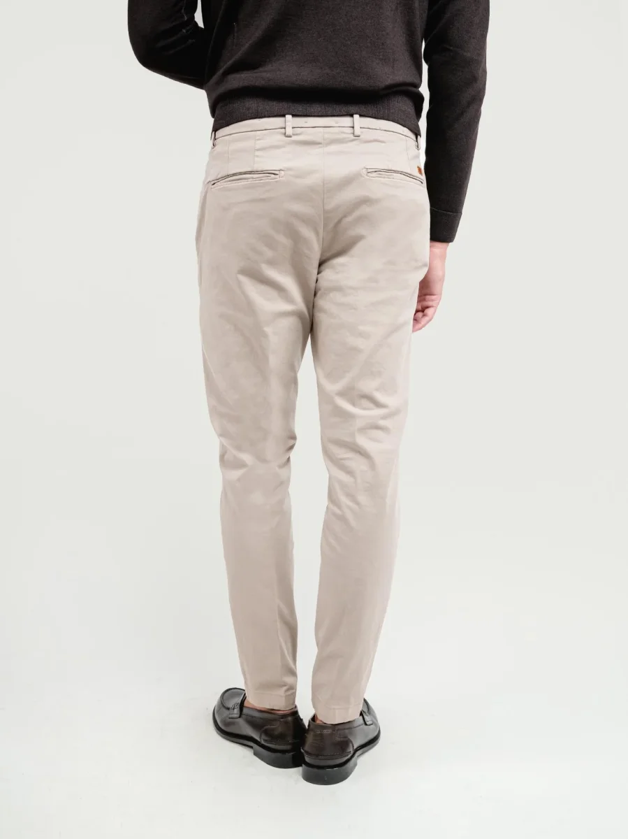 Dettaglio tasche a filo americane e tasche a filetto posteriori.