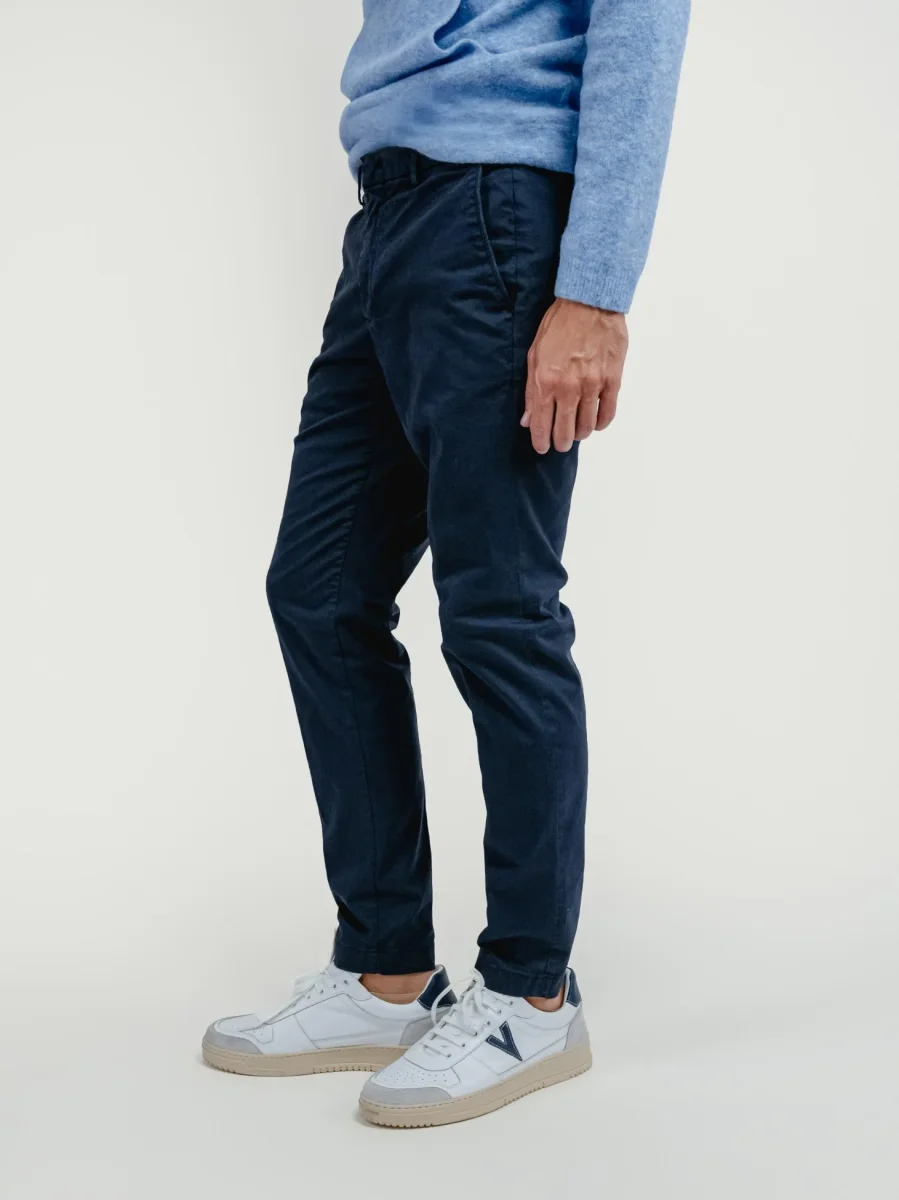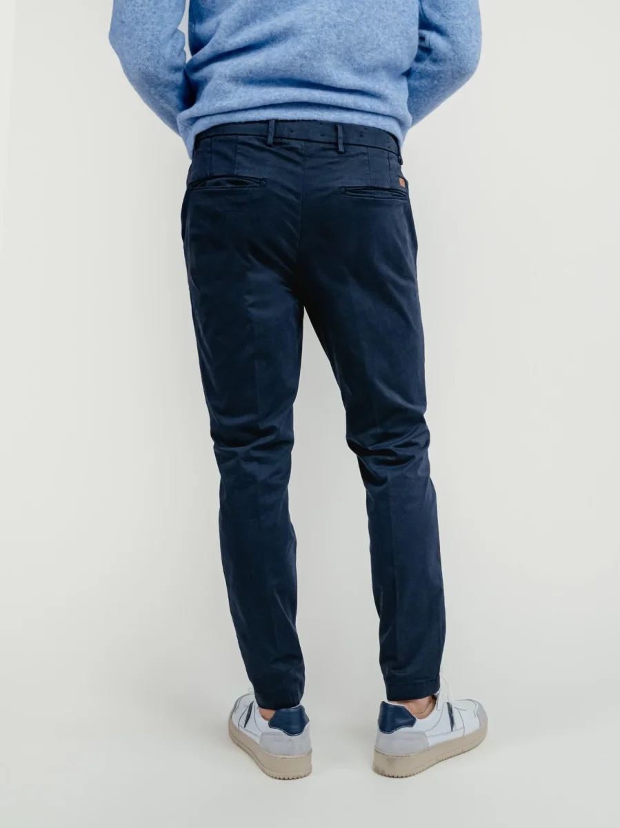 Dettaglio tasche a filo americane e tasche a filetto posteriori.