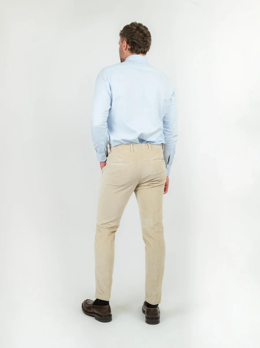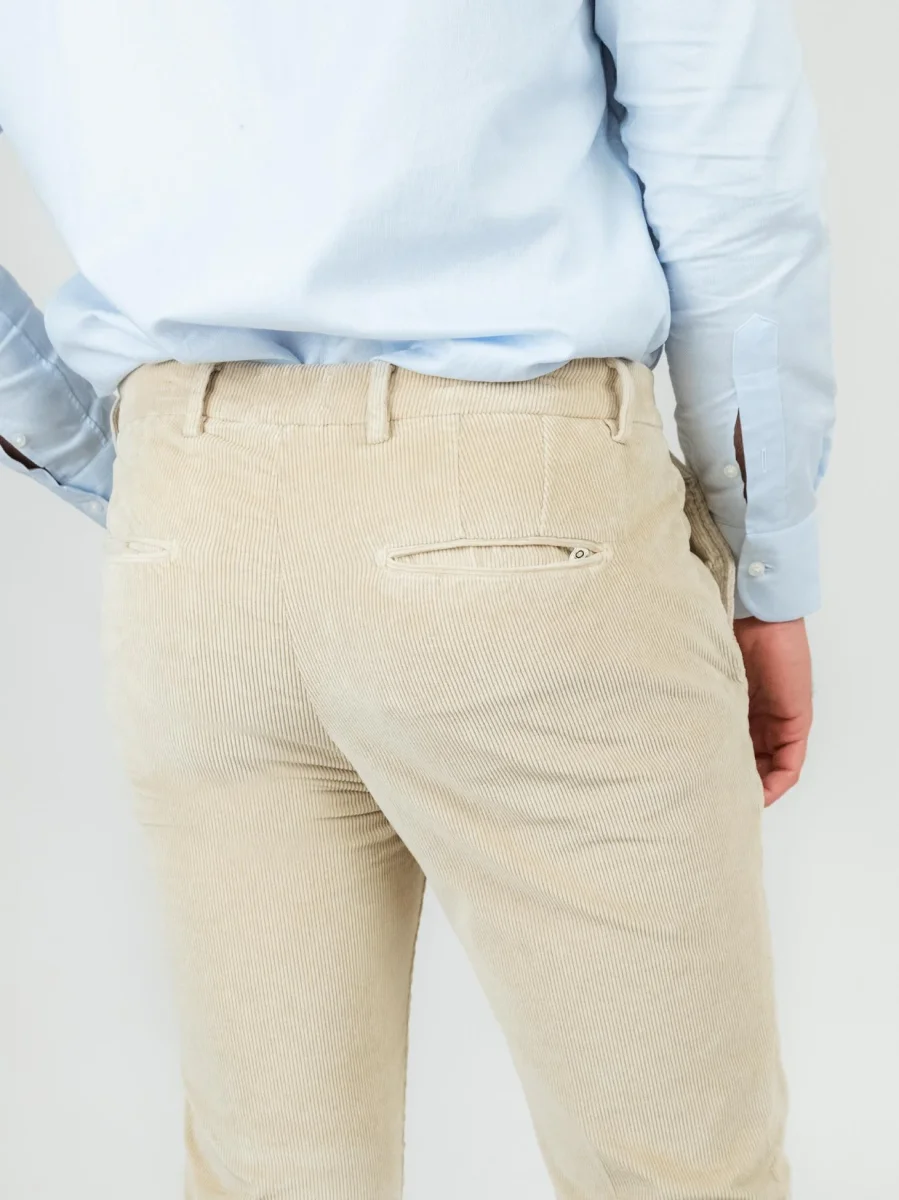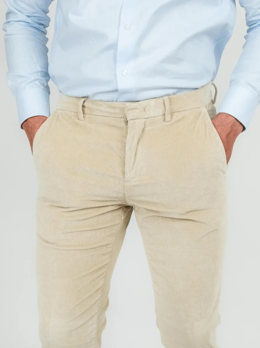 Pantalone in velluto a coste beige.