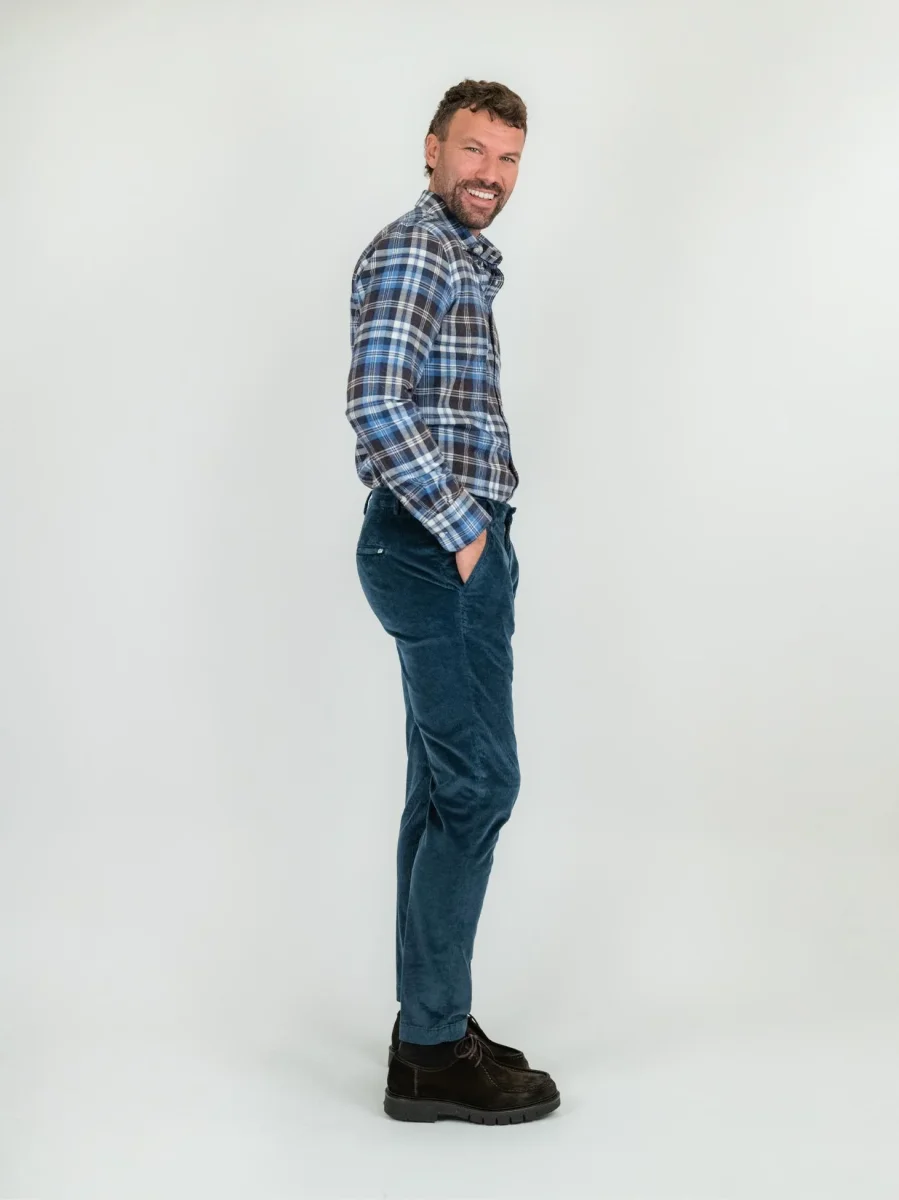 Pantalone in velluto a coste blu.