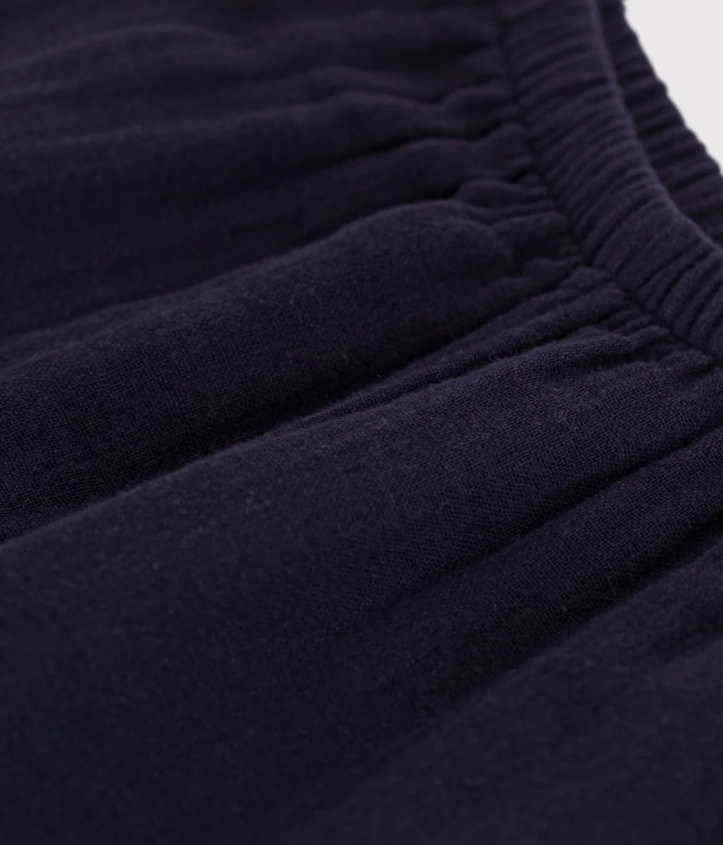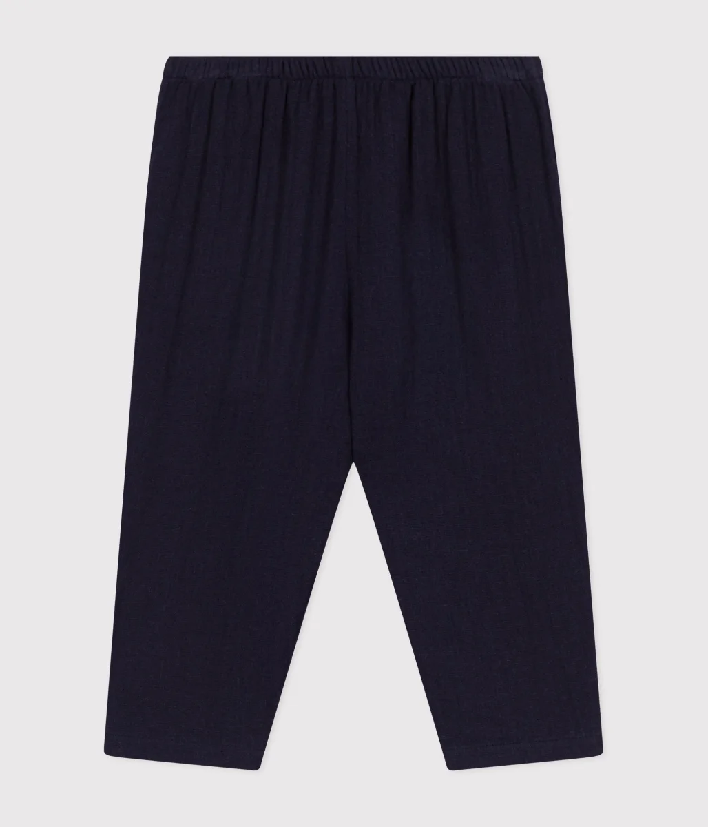 Pantaloni in garza di cotone, un tessuto leggero ideale per la stagione.Vita elasticizzata per una maggiore comodità e per una facile vestibilità.