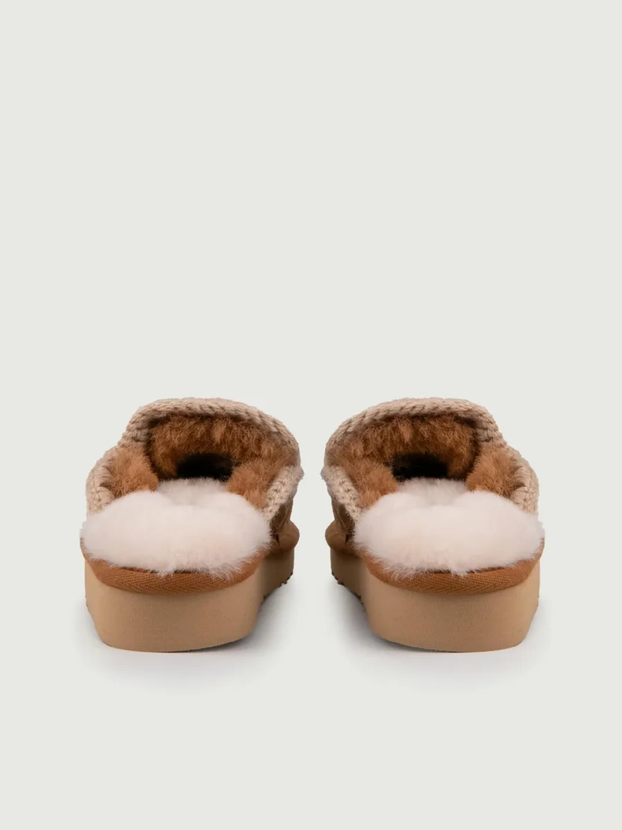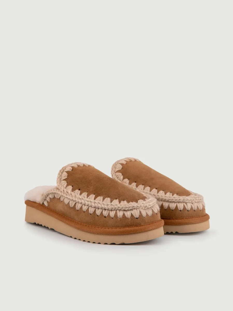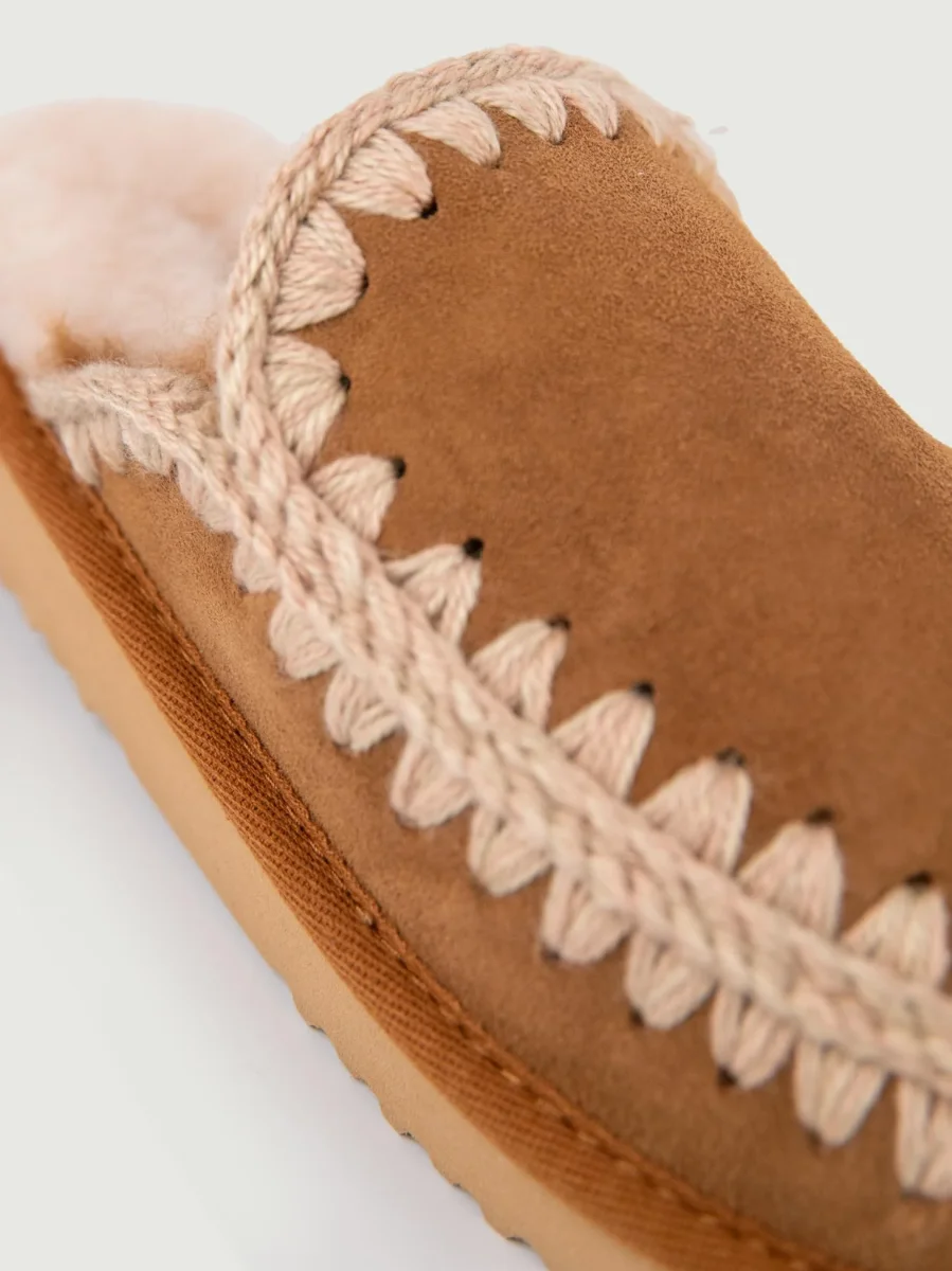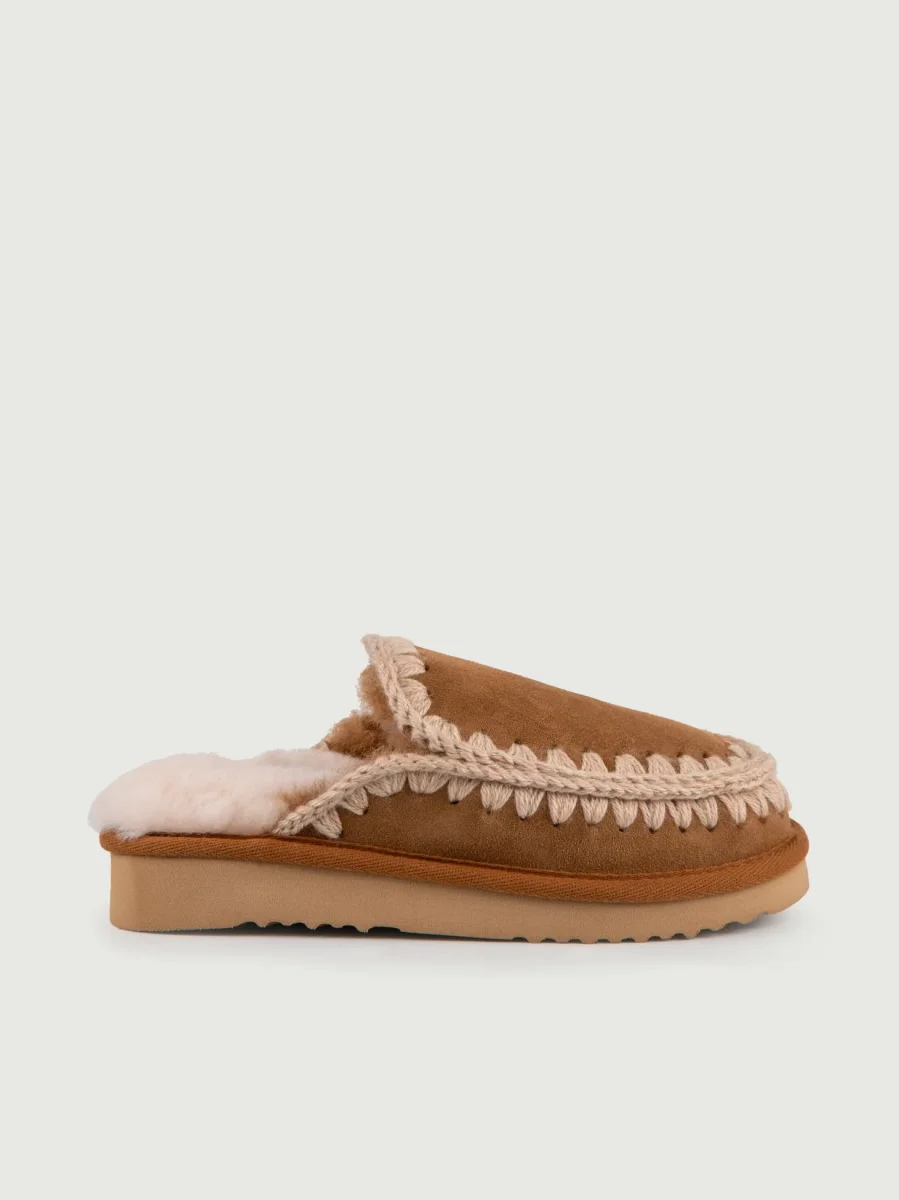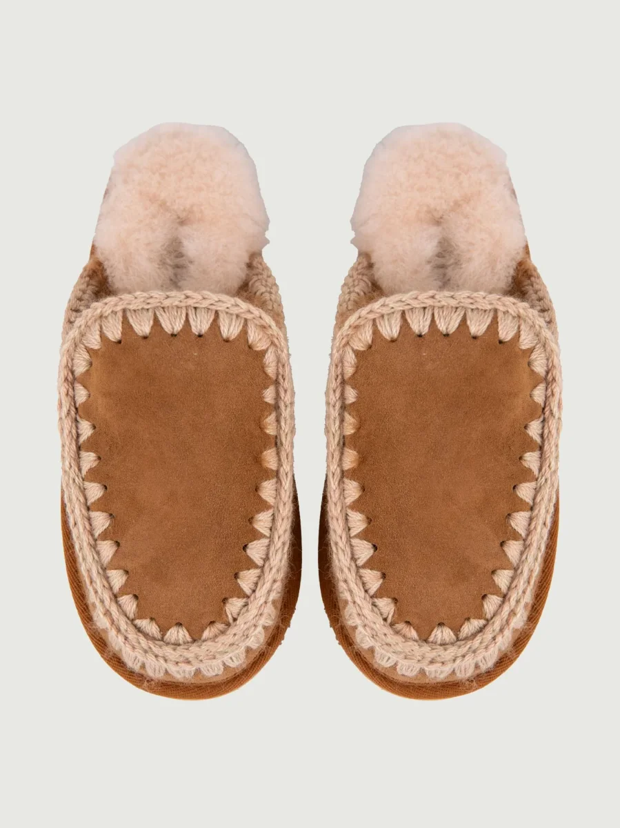 Pantafola Mou color cuoio in pelle scamosciata di montone double-face calda e confortevole
