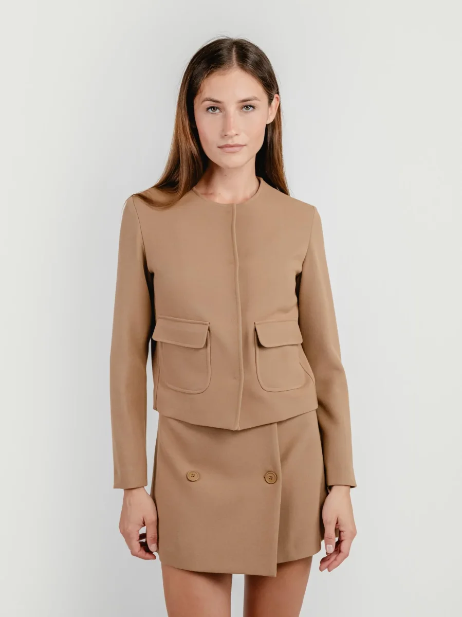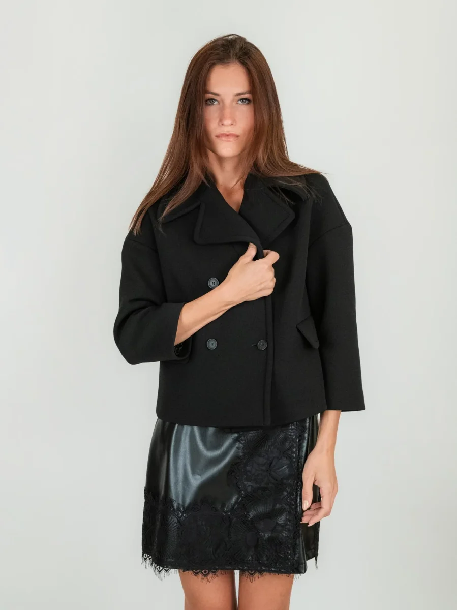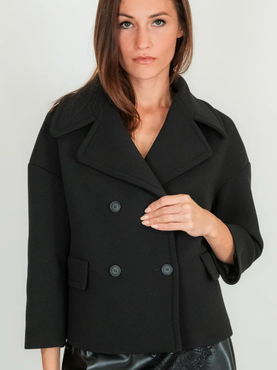 Peacot doppiopetto corto in neoprene.