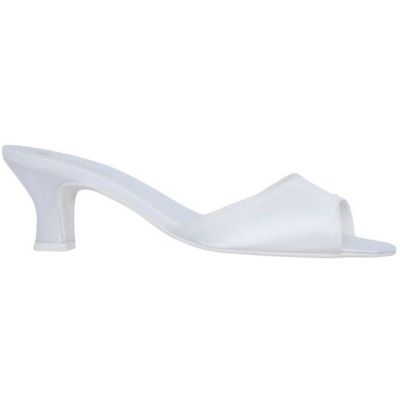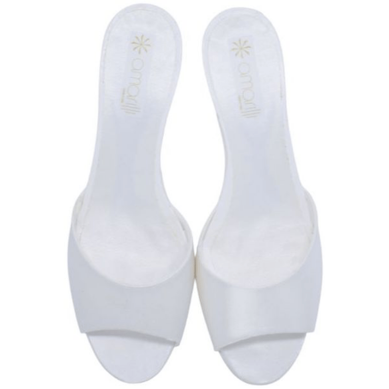 Realizzate con tomaia aperta in raso nei colori Avorio e Bianco, le ciabatte da Sposa Perla hanno uno stile essenziale che si adatta a tutte le occasioni.
