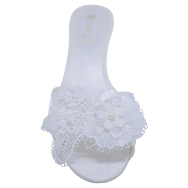 Realizzate con tomaia aperta in raso nei colori Avorio e Bianco, le ciabatte da Sposa Perla hanno uno stile raffinato ed flessuoso.