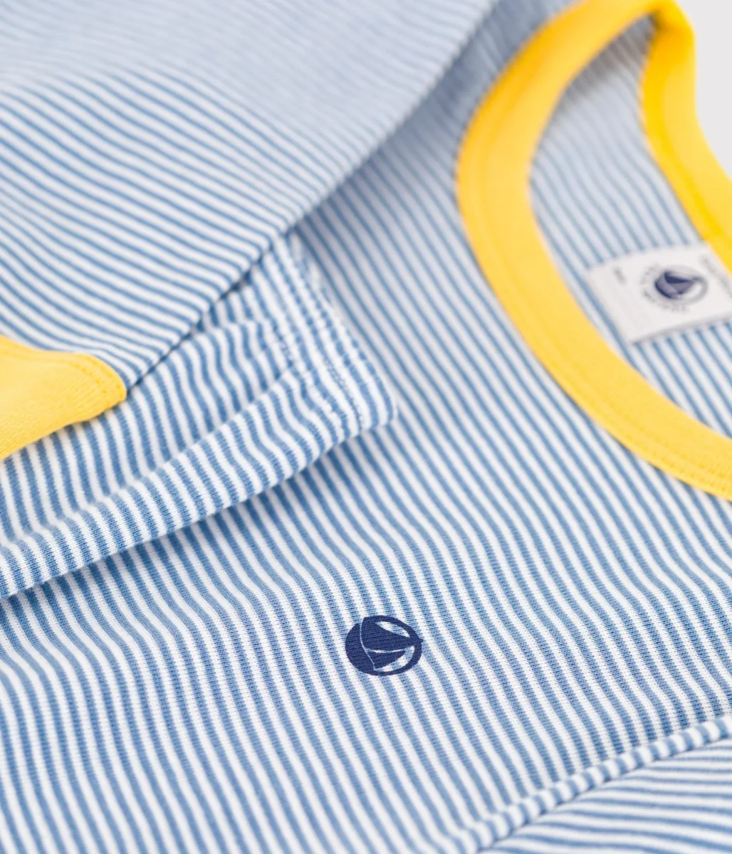 Pigiama realizzato in tessuto a costine 1×1 a righe, il materiale iconico di Petit Bateau che garantisce una libertà di movimento ottimale.