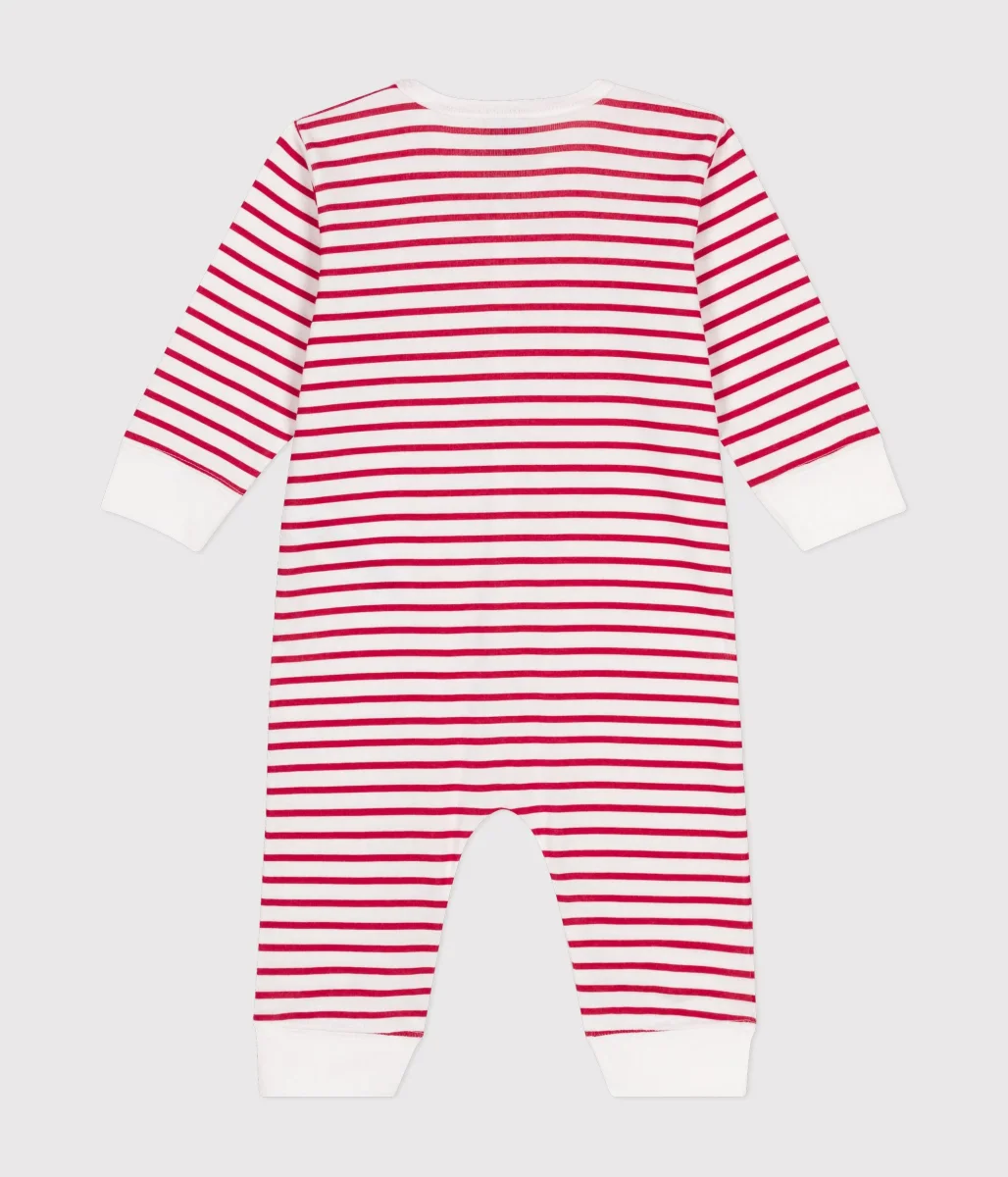 Tutina pigiama a righe rosse e bianche, unisex, a costine, il tessuto emblematico di Petit Bateau.