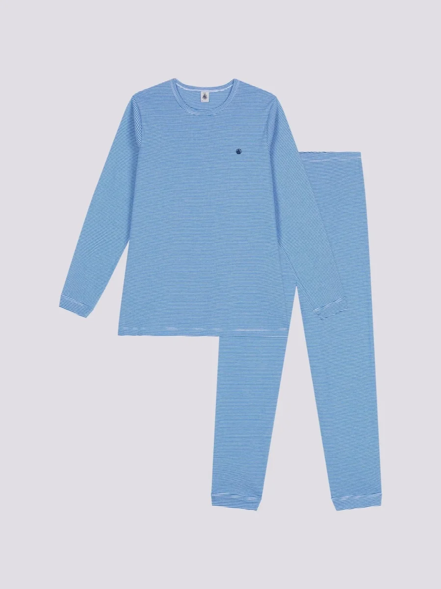 Pigiama millerighe unisex a costine 1×1, il tessuto emblematico di petit bateau.