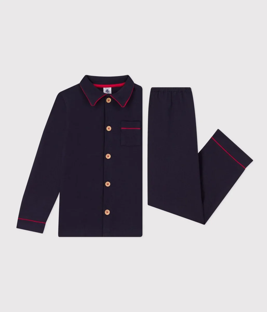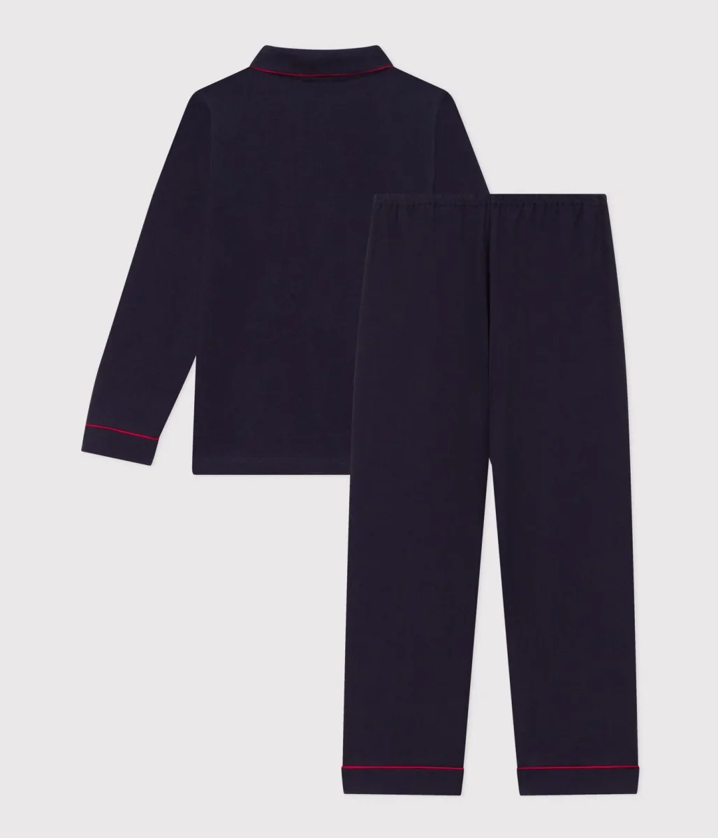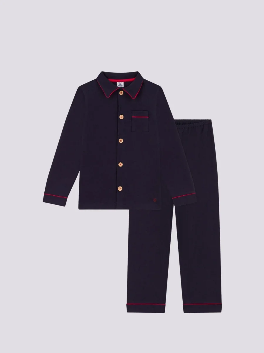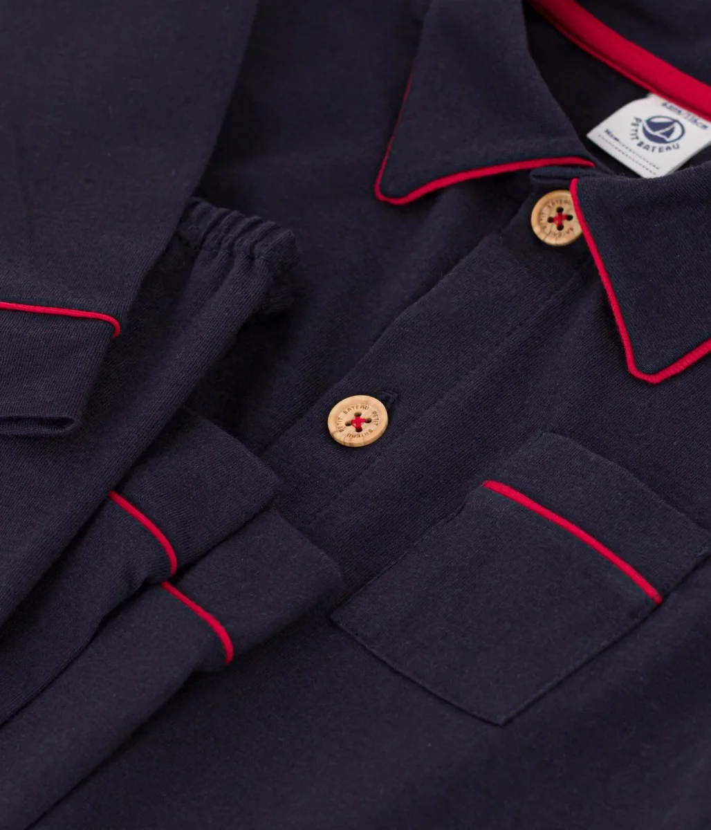 Logo Petit Bateau serigrafato sulla maglia del pigiama, in basso a sinistra quando lo si indossa.