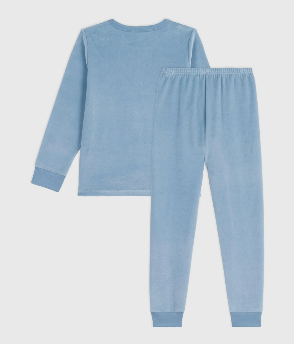 Pigiama in ciniglia bouclé, un materiale caldo e raffinato. Pigiama tinta unita con T-shirt con stampa divertente sul davanti.