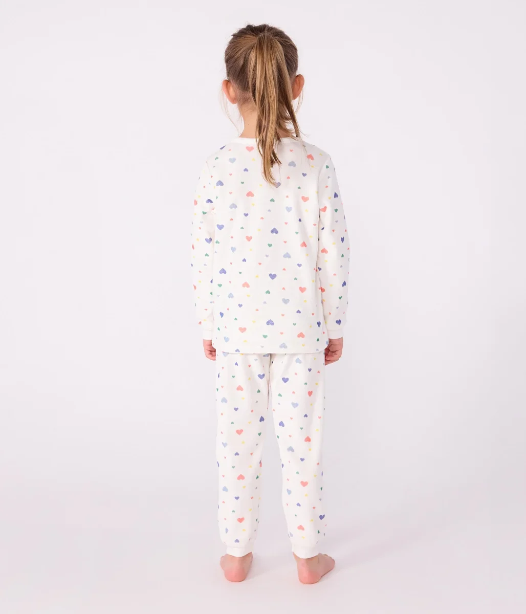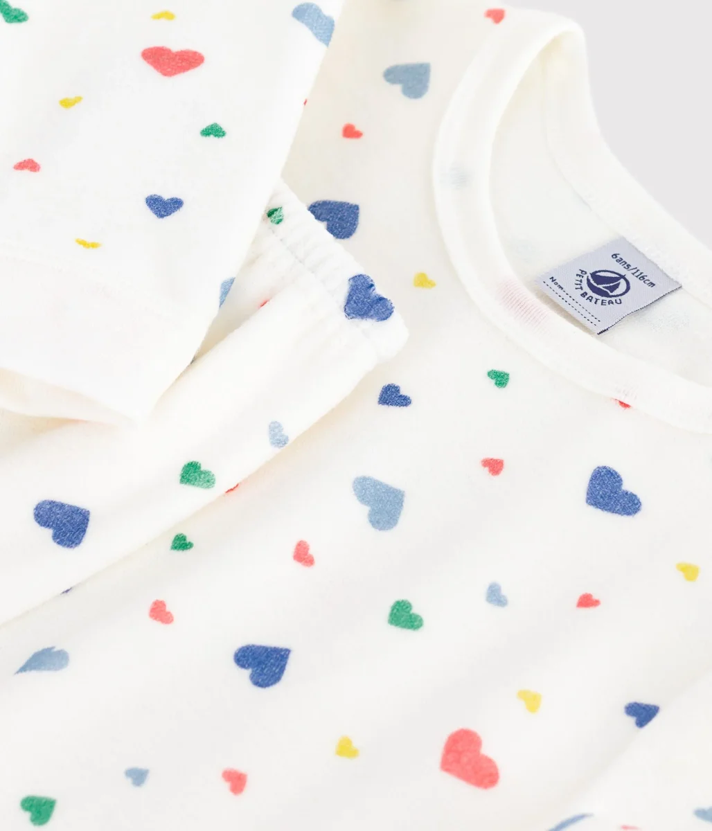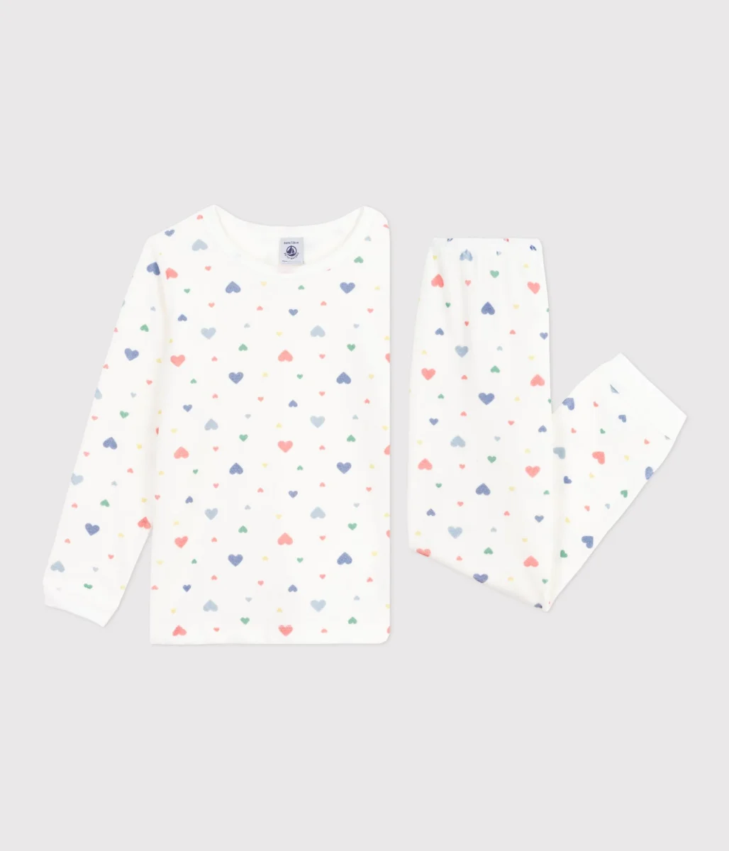 Pigiama bambina in ciniglia bouclé, un materiale caldo e raffinato. Pigiama in morbida ciniglia con cuoricini multicolori stampati per un tocco di fantasia!