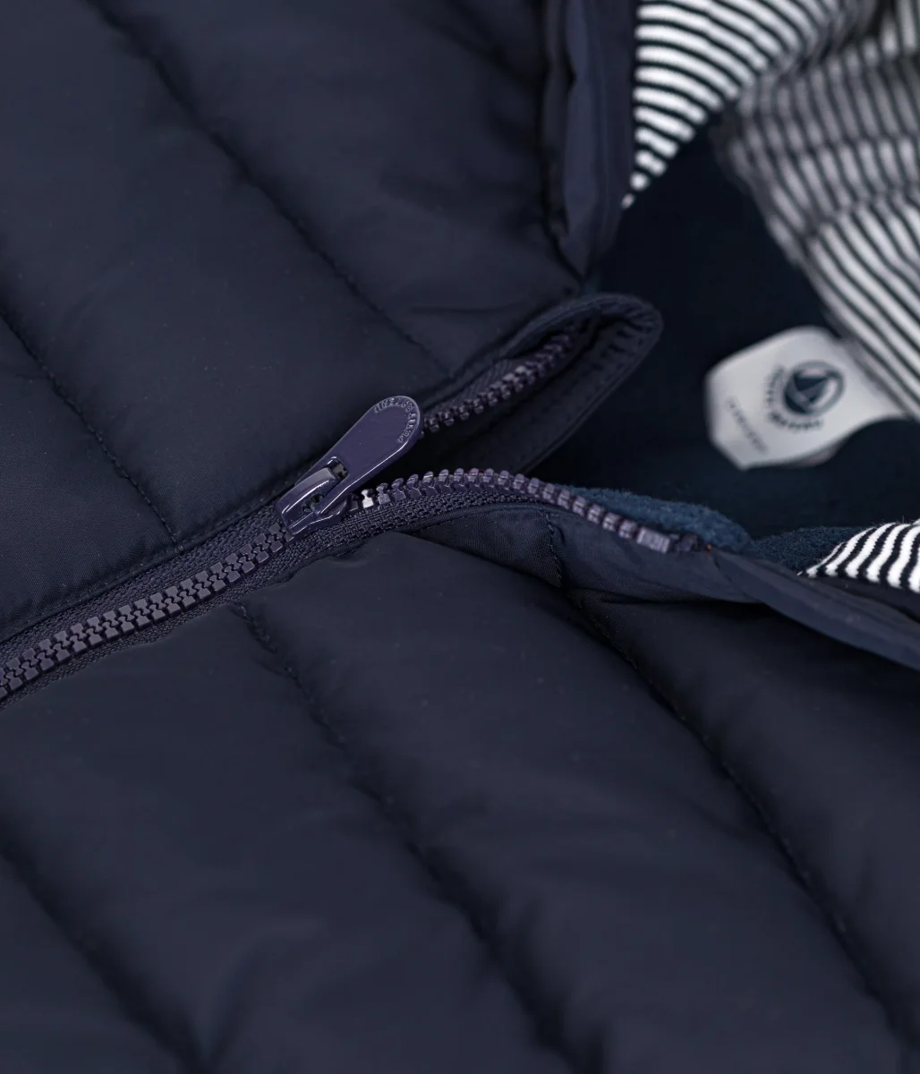 Piumino trapuntato con cappuccio e tasche con pattina sul davanti.
