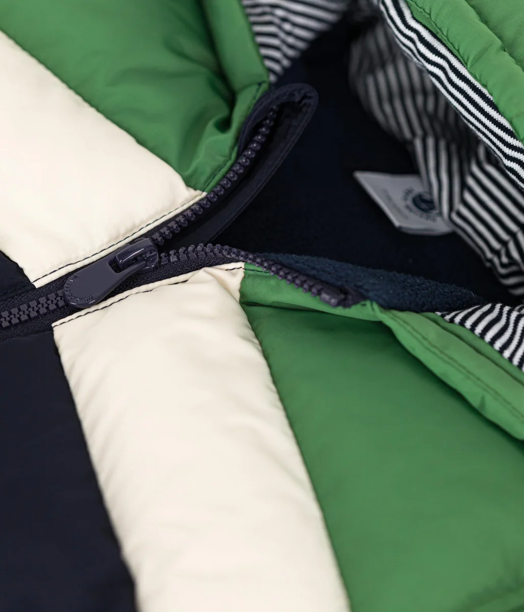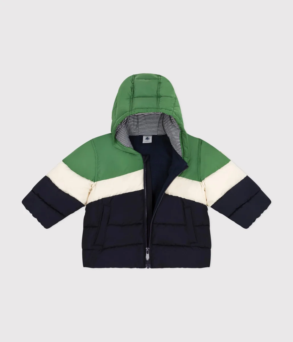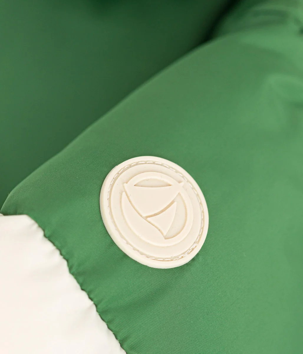 Piumino unisex trapuntato con cappuccio e tasche con pattina sul davanti.