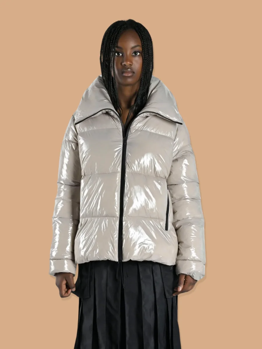 Piumino impermeabile lucido beige