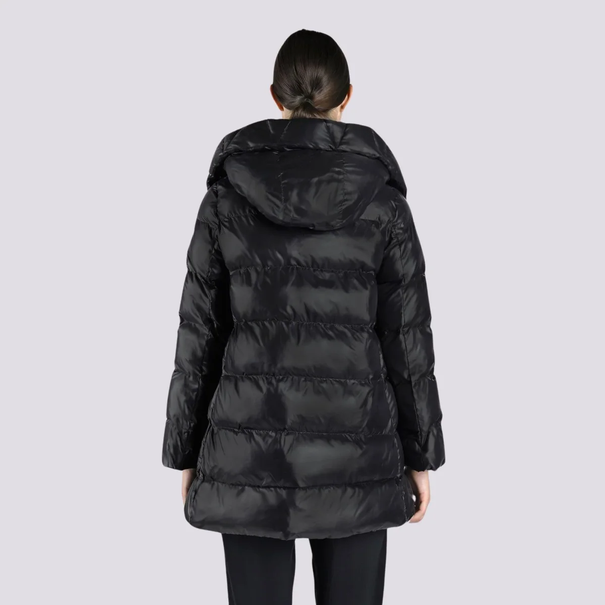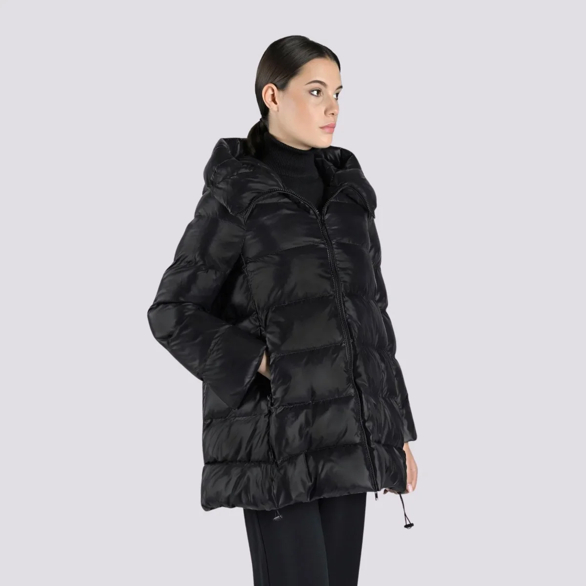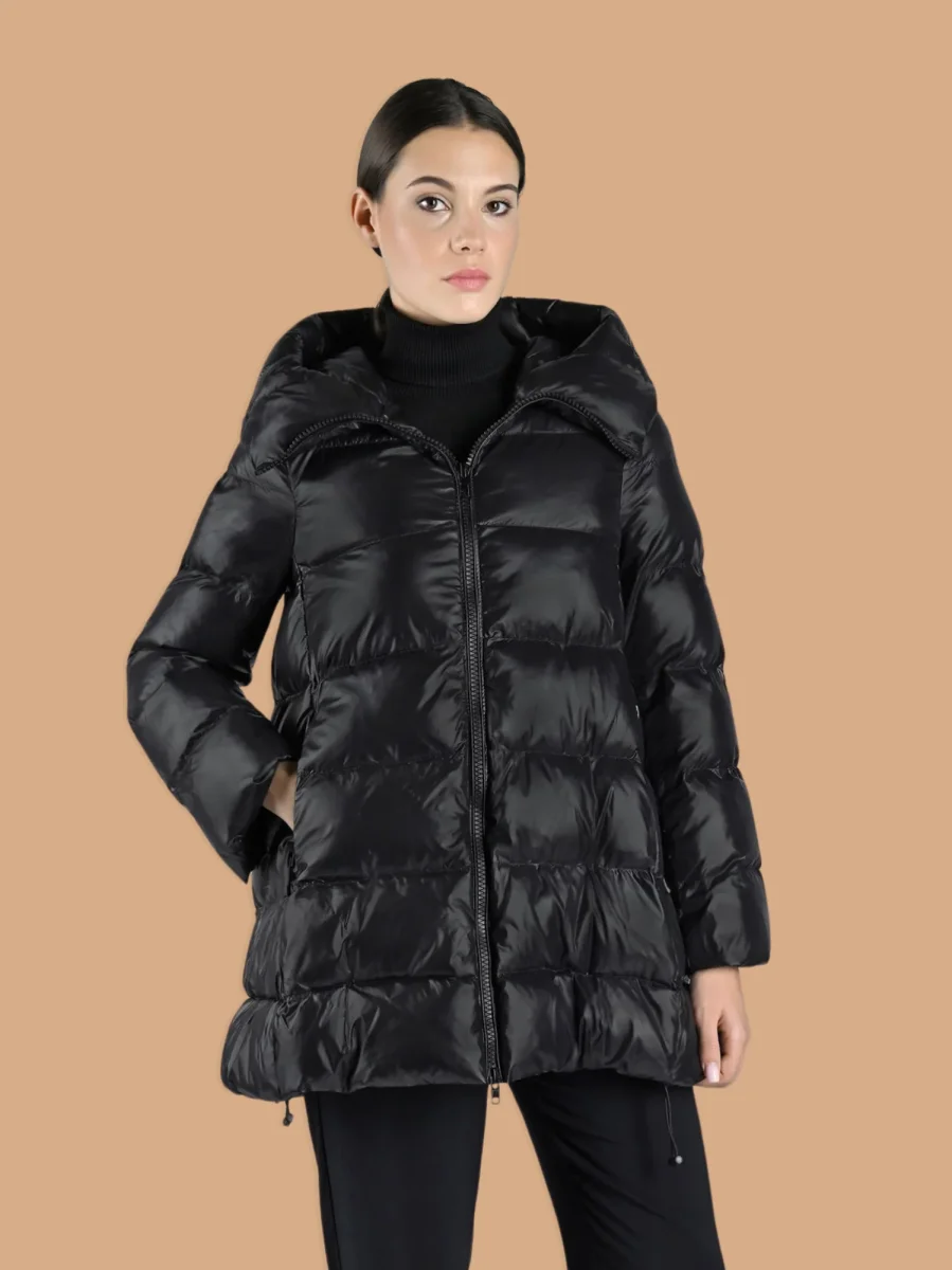 Piumino imbottito in nylon al 100% per l’esterno e una fibra sintetica proveniente da materiali riciclati per l’interno, super leggero ma anche super caldo. Il cappuccio integrato imbottito e una coulisse sul fondo permettono di chiuderlo completamente, lasciando all’esterno vento e freddo. Perfetto per i weekend in montagna, abbinato ad outfit e accessori eleganti, non vi farà sfigurare nelle occasioni più formali.