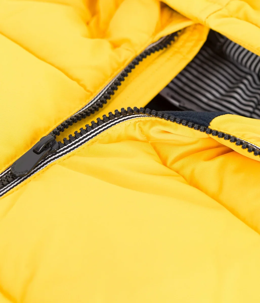 Questo piumino basic è foderato in micropile a livello del busto e delle tasche, per una maggiore morbidezza e calore.