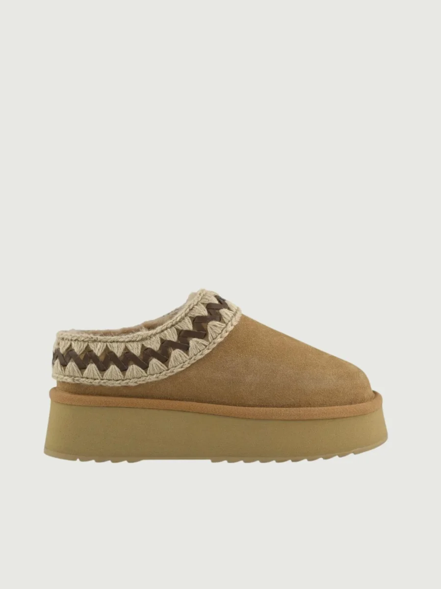 Platform clog realizzato a mano in vero montone double-face
