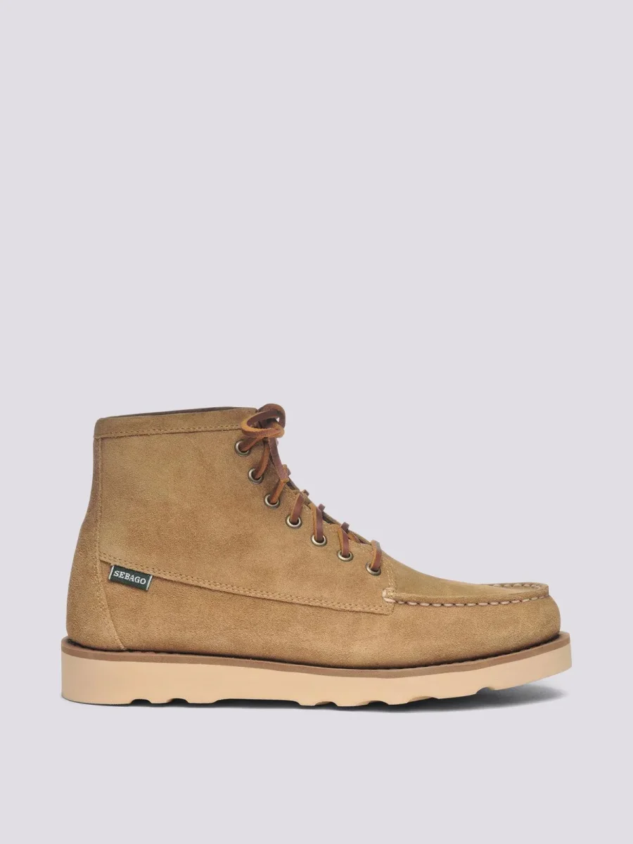 Polacchino in pelle scamosciata testa moro, realizzato unendo una suola in gomma con para, caratterizzato da una punta rotonda e una fodera in pelle.