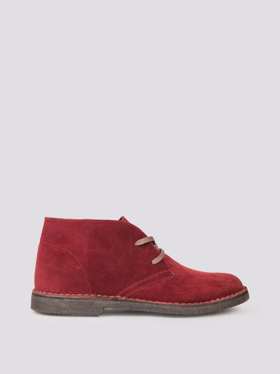 Stringata in stile paraboot in pelle scamosciata taupe.