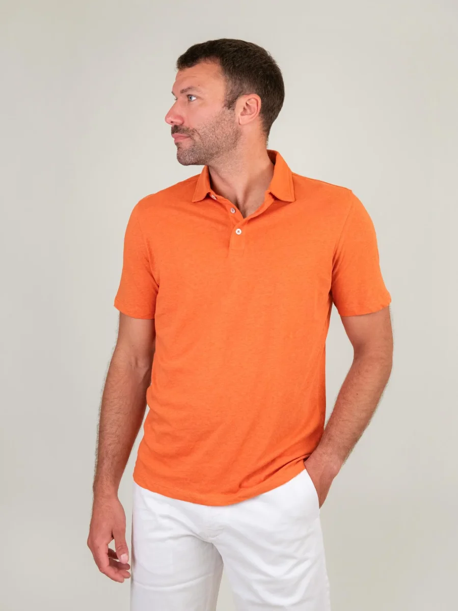 Polo con colletto aperto in maglina di cotone blu navy.