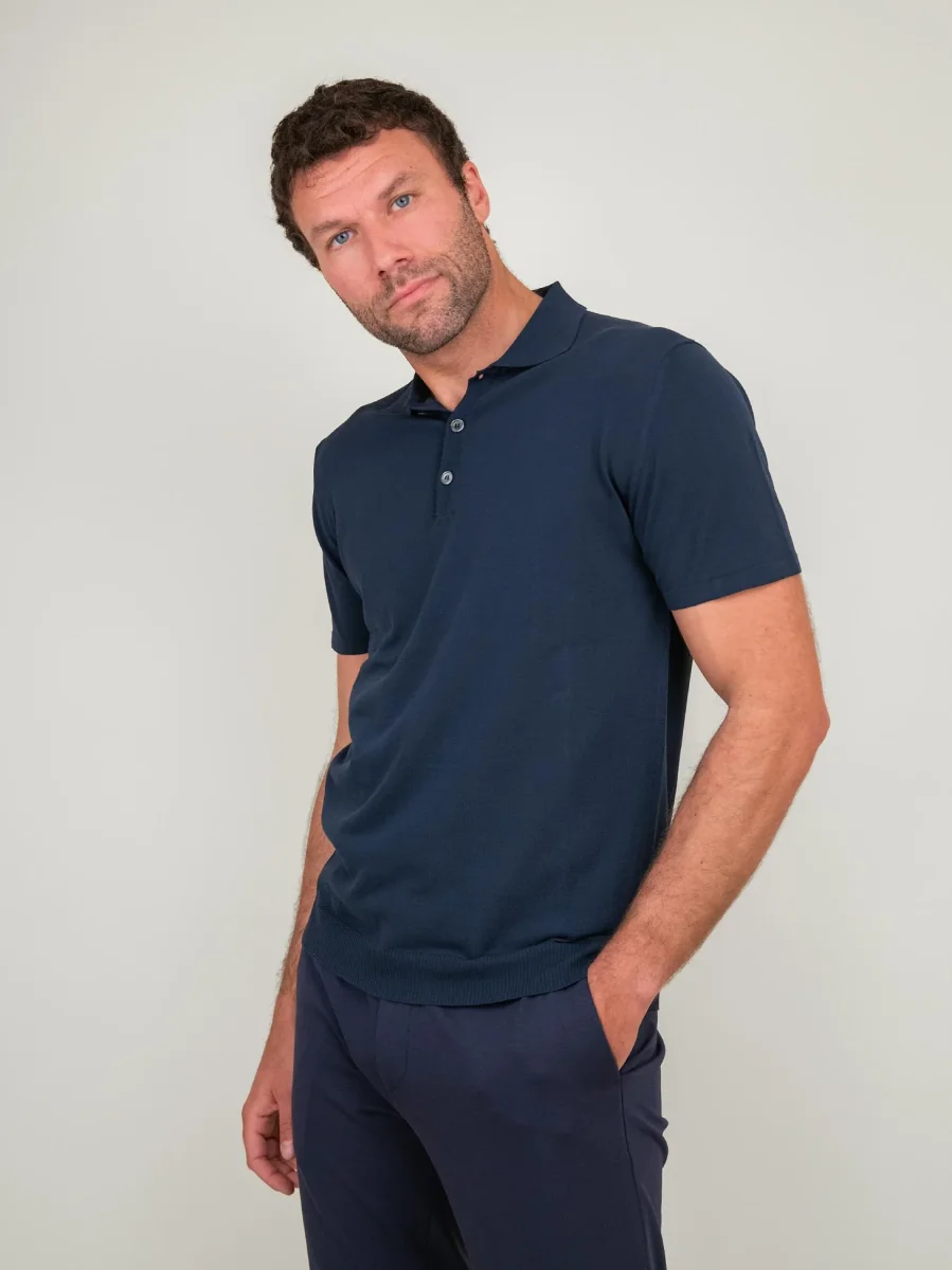 Polo in cotone superleggero color blu di Daniele Fiesoli.