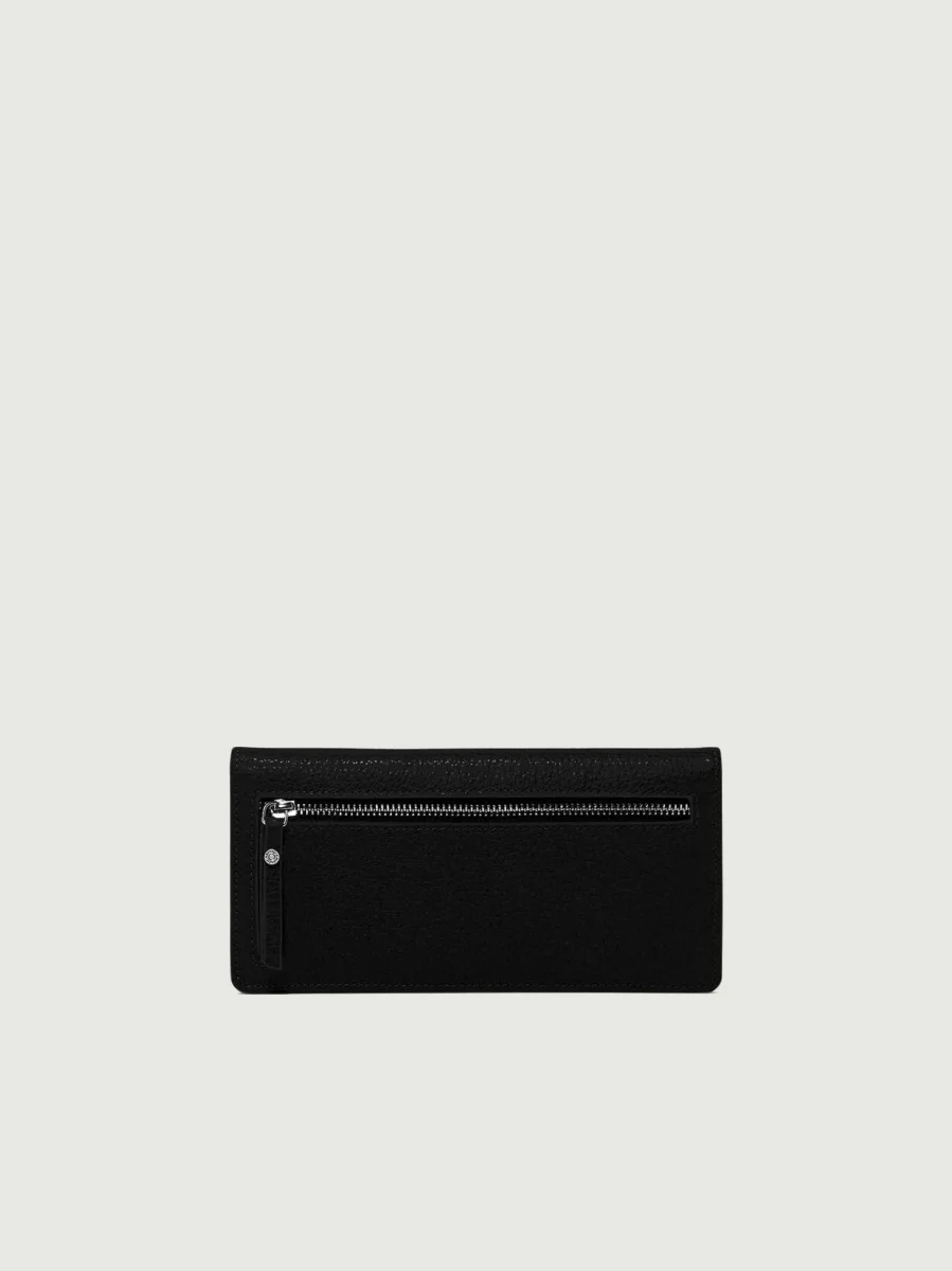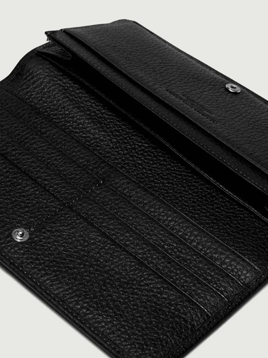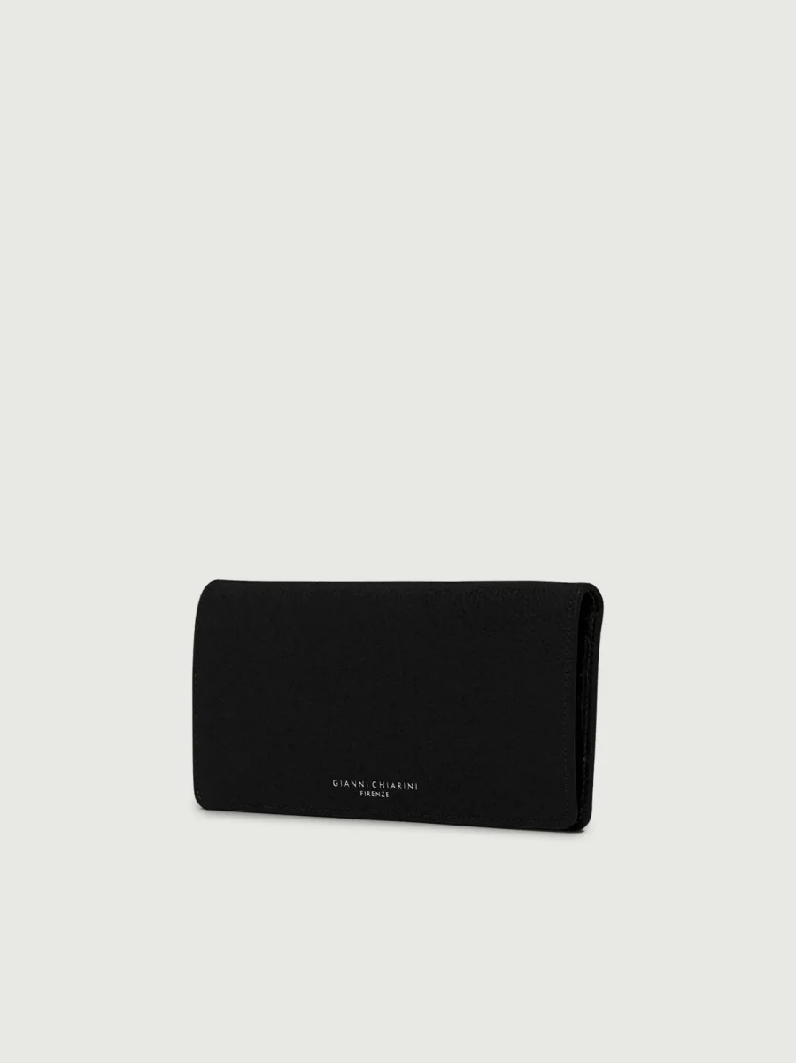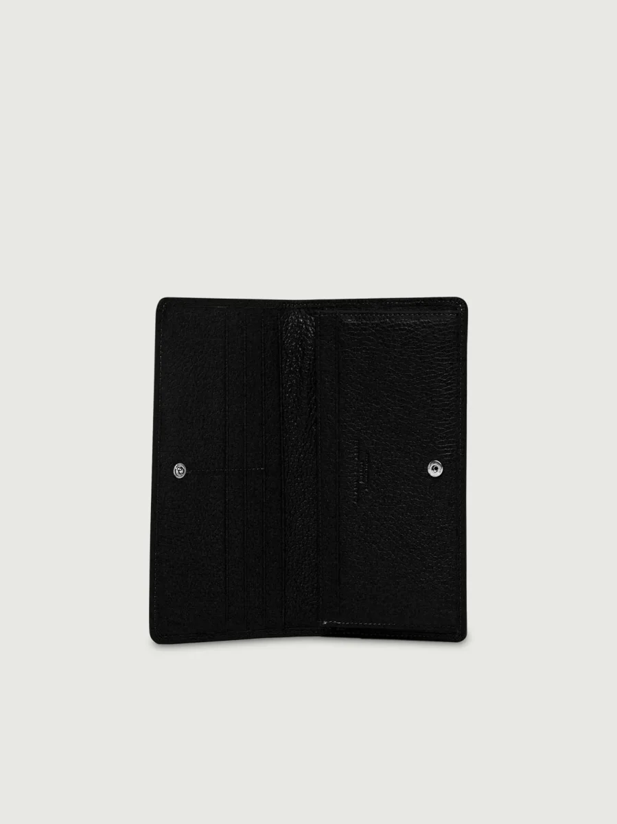 Portafoglio Grain color nero in pelle martellata.