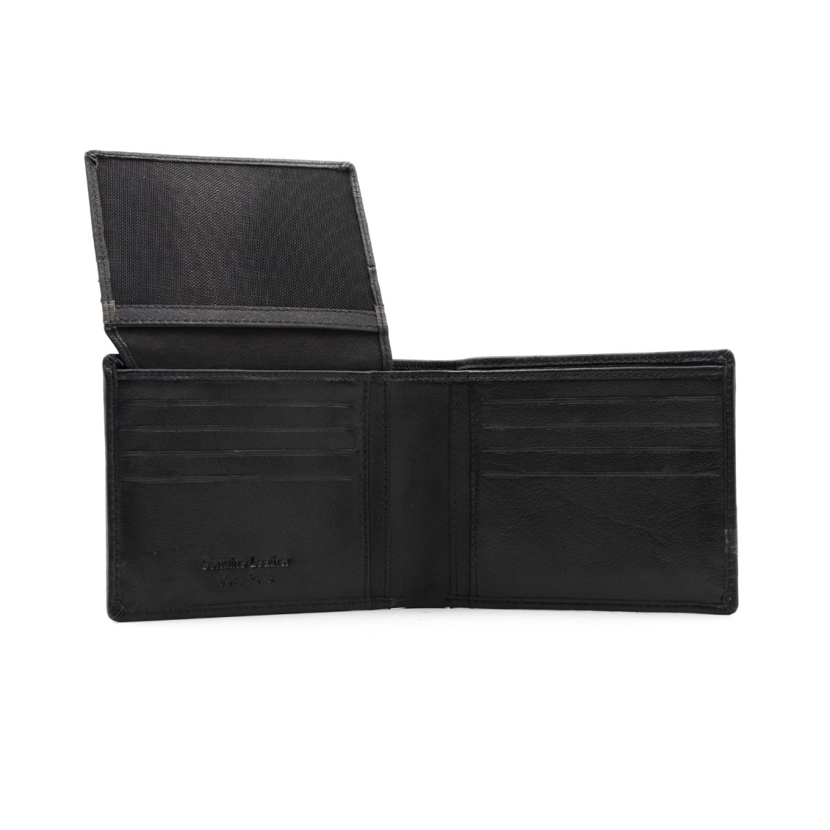 Dotato di patta interna con scomparti per carte di credito e tasche per banconote e documenti, offre spazio ben organizzato in un formato compatto.