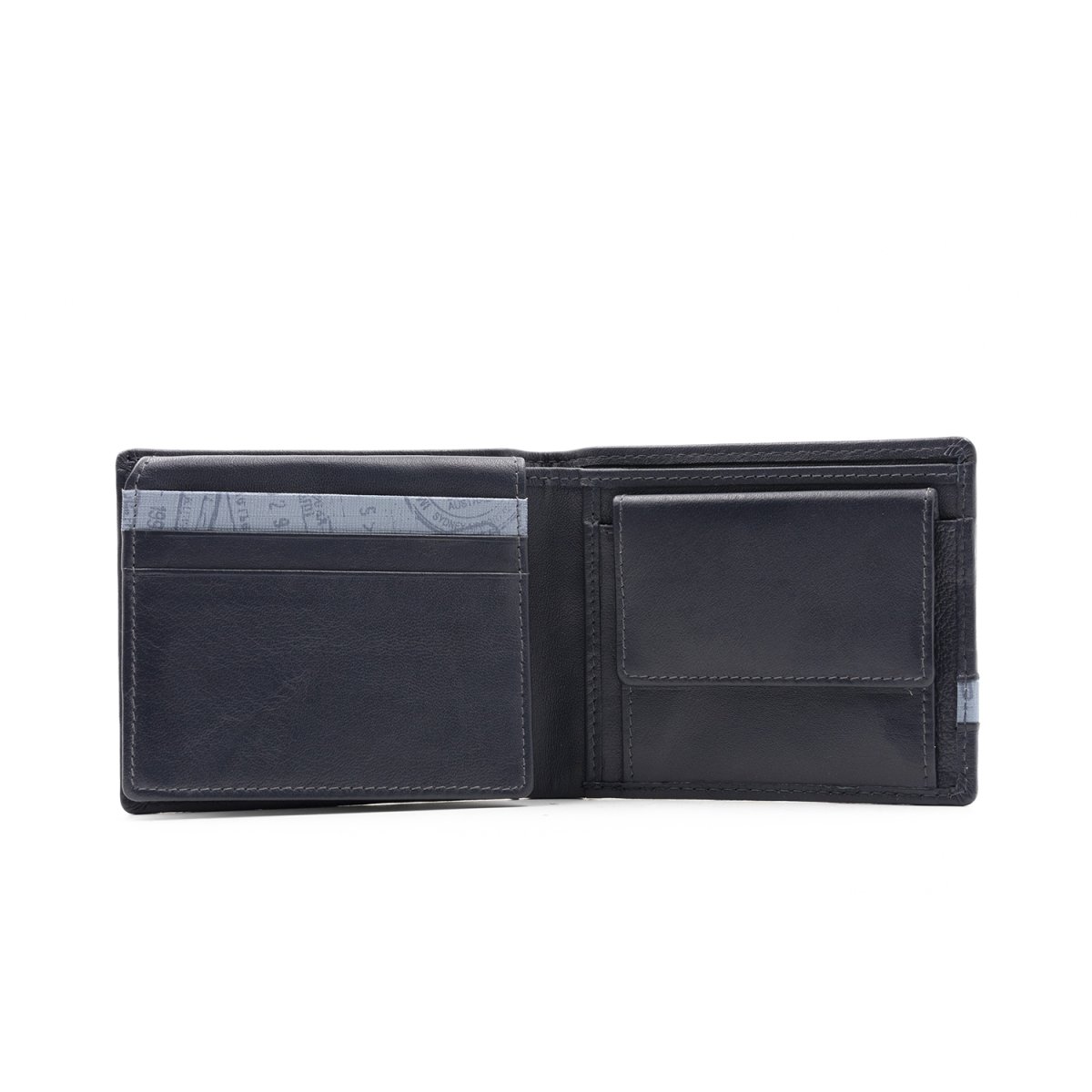 Dotato di patta porta carte di credito, scomparto portamonete con chiusura a bottone e tasche per banconote e documenti, offre spazio e organizzazione in un formato compatto.
