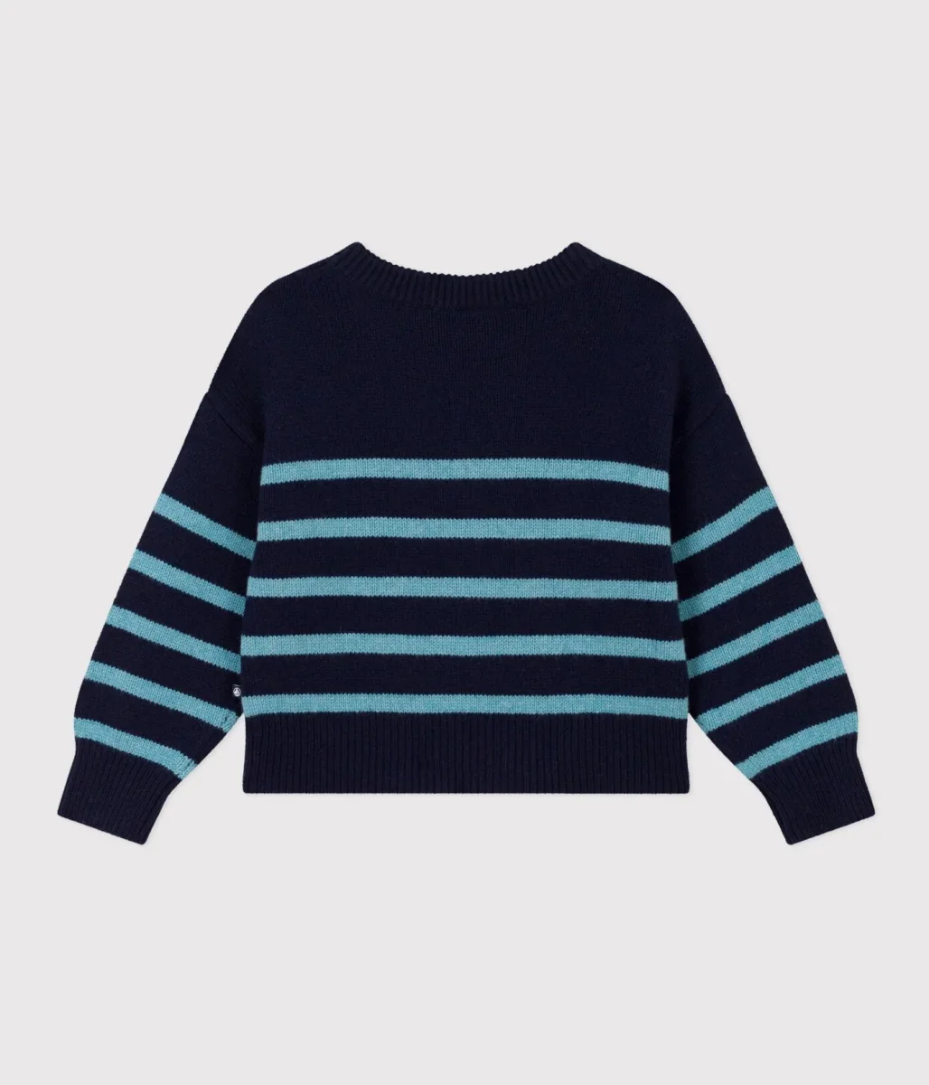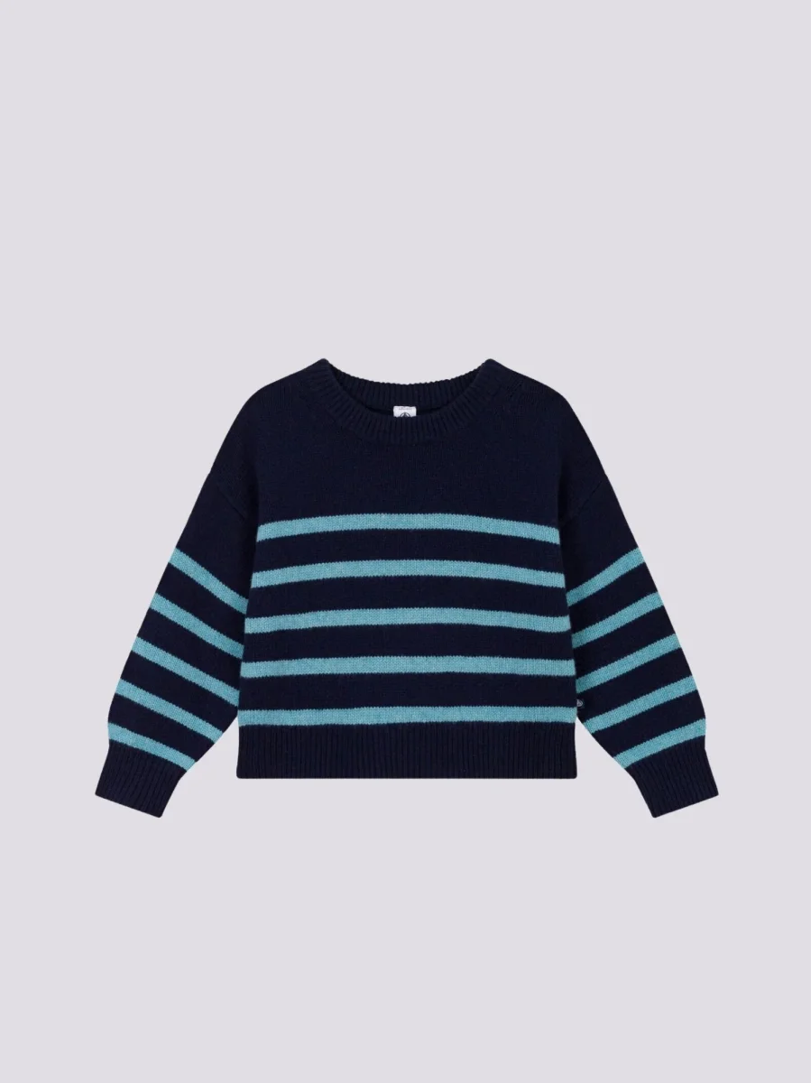 Maglione iconico a righe in tricot di lana e cotone, morbido, caldo e confortevole.