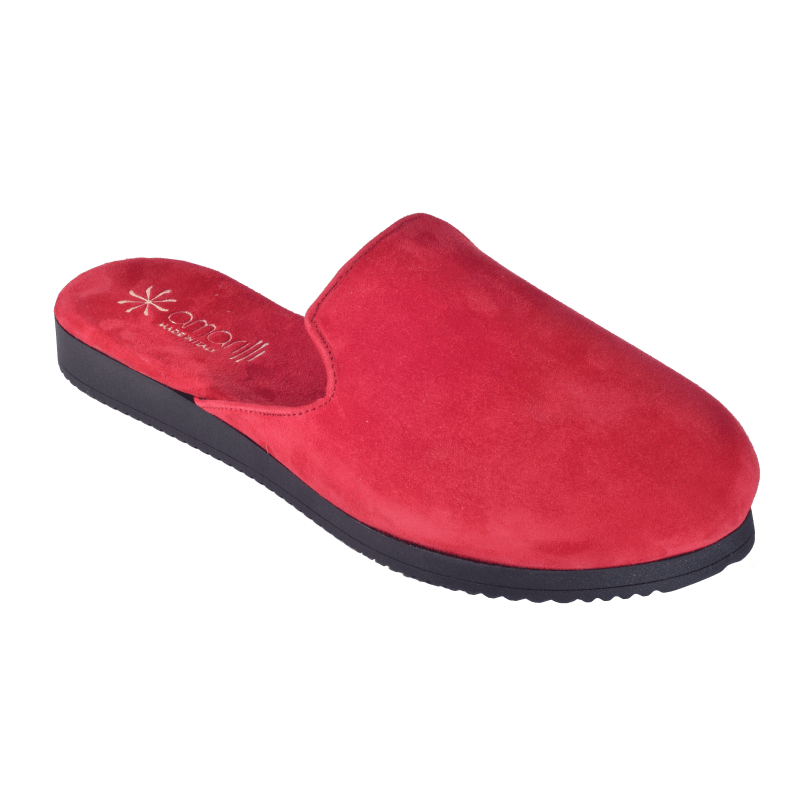 Realizzate con tomaia a punta chiusa in pelle Camoscino, le ciabatte da camera Rosa sono disponibili nei colori Bluette, Fango, Nero, Rosa, Rosso, Verde.