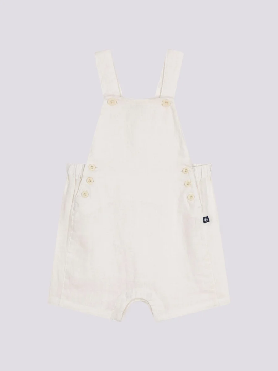 Salopette in lino, un materiale resistente e leggero al tempo stesso, ideale per la stagione.