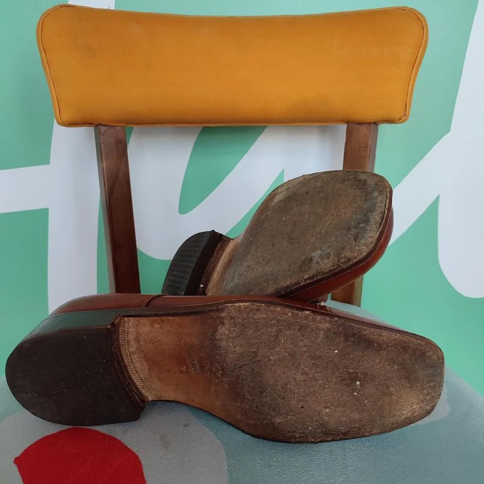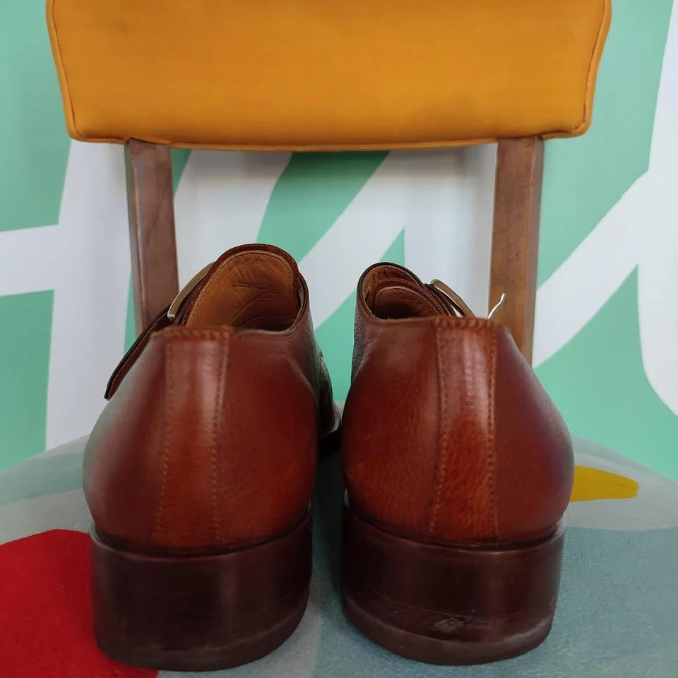 Scarpe eleganti in cuoio, tg 40, colore marrone, chiusura con fibbia. Il tacco misura 4 cm. In buone condizioni