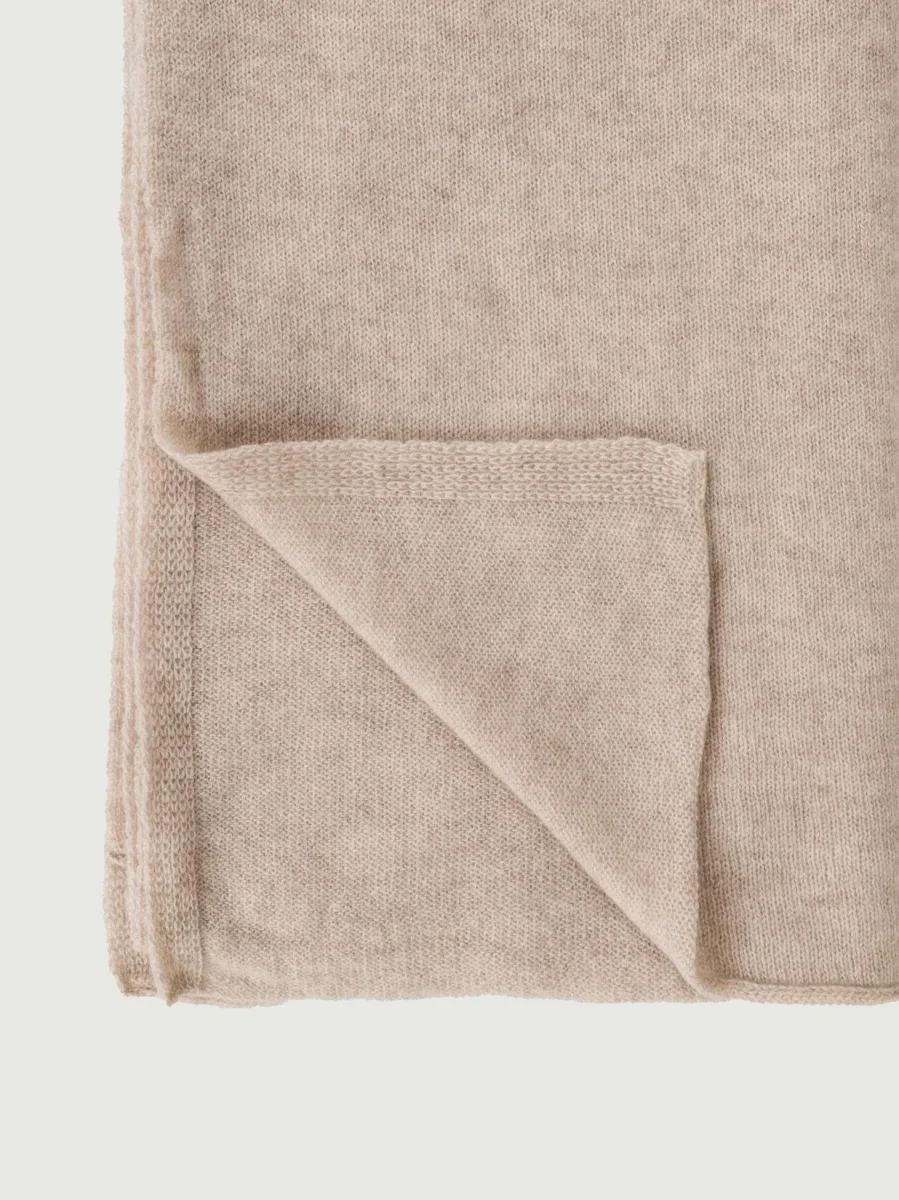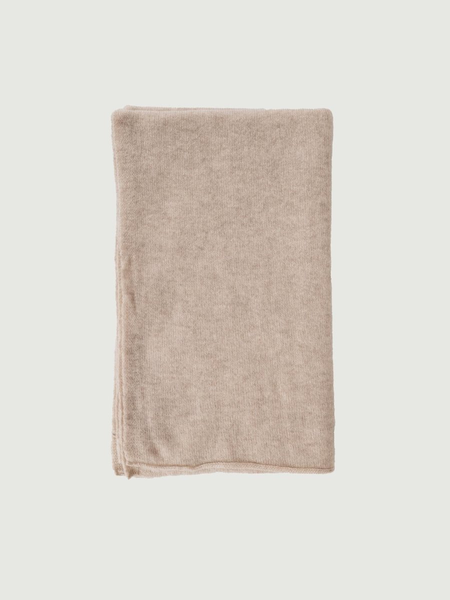Sciarpa beige realizzata in morbido cashmere, caldo e avvolgente.