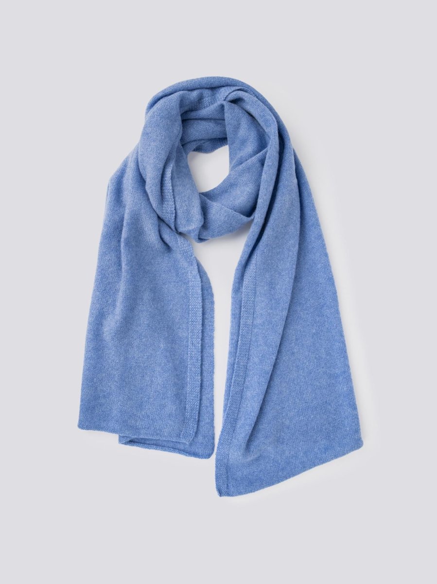 Sciarpa in cashmere azzurro. Un accessorio tanto semplice quanto essenziale per affrontare le giornate di inverno più fredde. Peso medio. Composizione: 100% cashmere. Taglia unica.