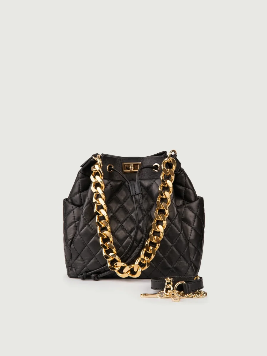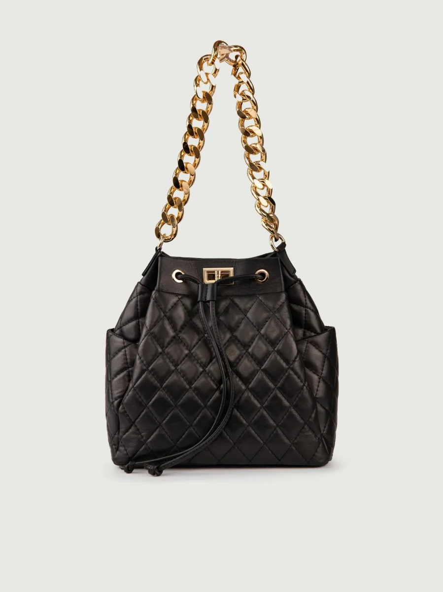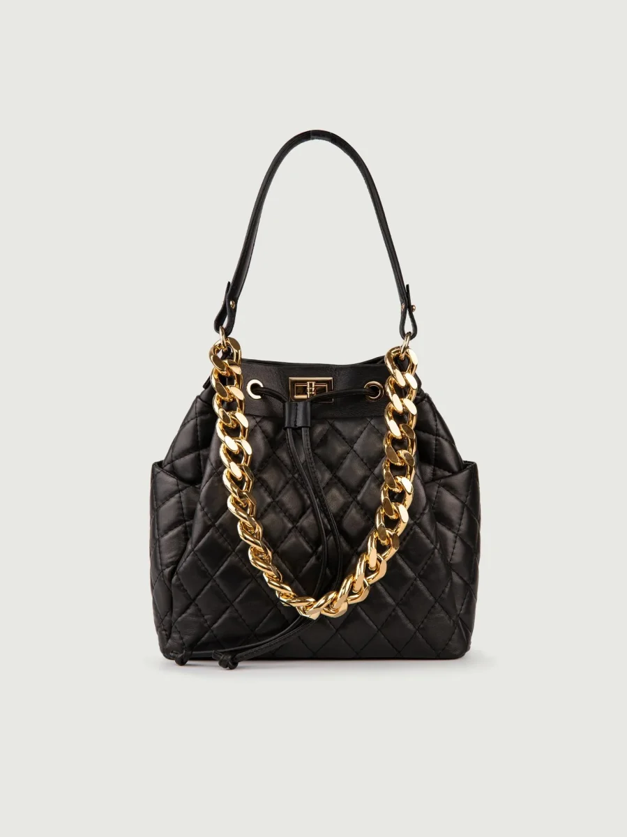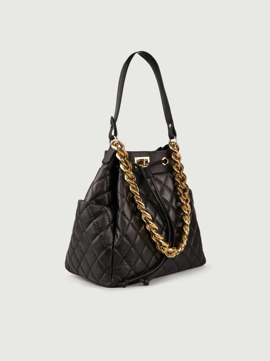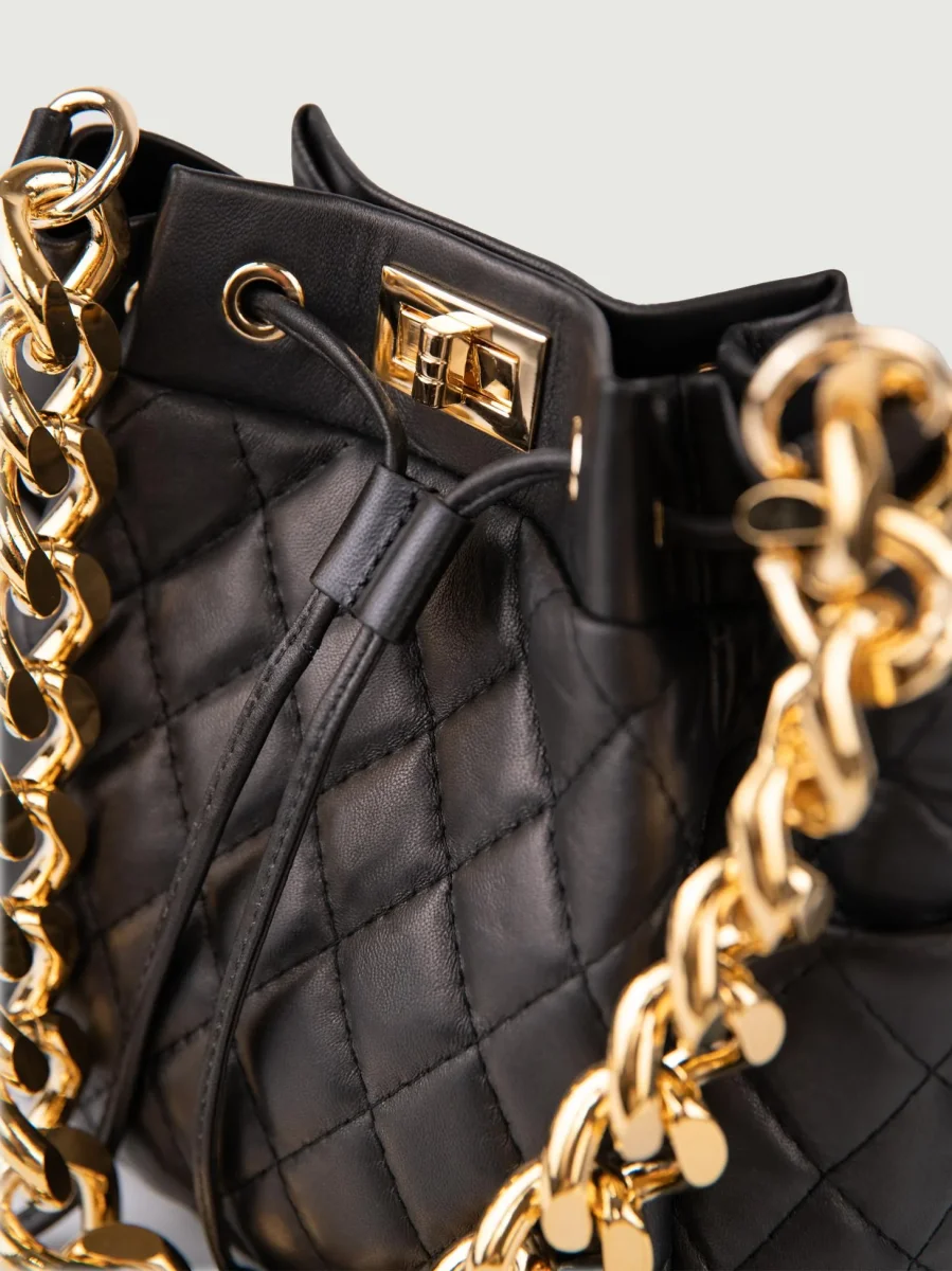 Secchiello in pelle nera matelassè Bucket.