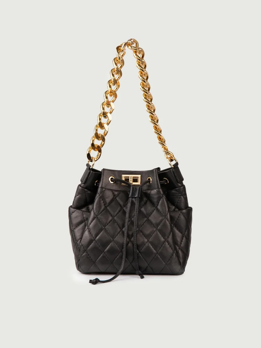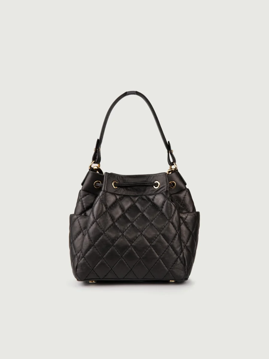 Mini secchiello in pelle nera matelassè Mini Bucket.