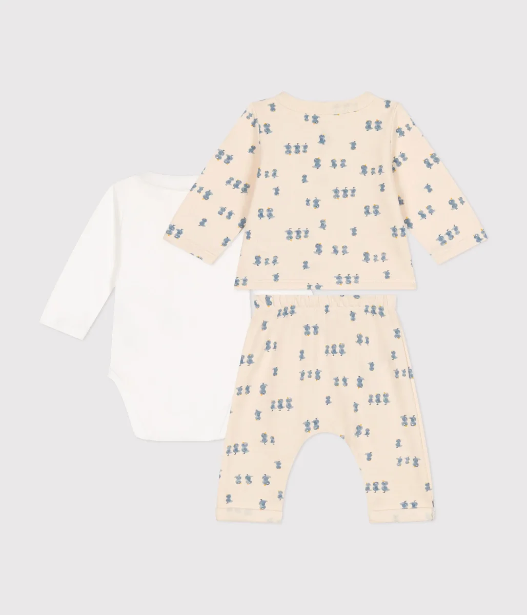 Cardigan e pantaloni unisex in tessuto felpato caldo, un tessuto setoso che conferisce morbidezza e calore. Body a costine 1×1, il tessuto emblematico di Petit Bateau.