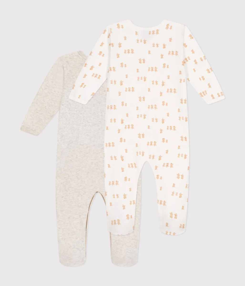 Queste 2 tutine pigiama unisex sono in velluto e in tessuto felpato spazzolato, materiali morbidi e caldi.