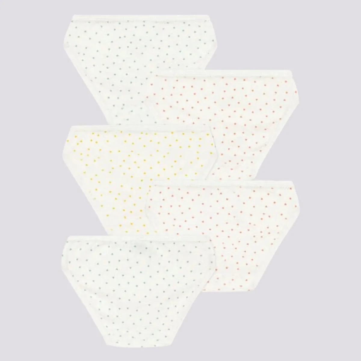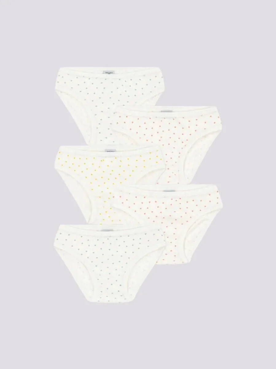 Confezione da 5 slip a costina, il tessuto emblematico di Petit Bateau.