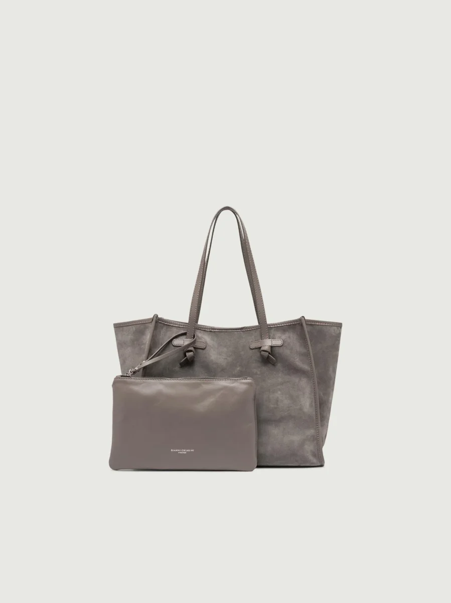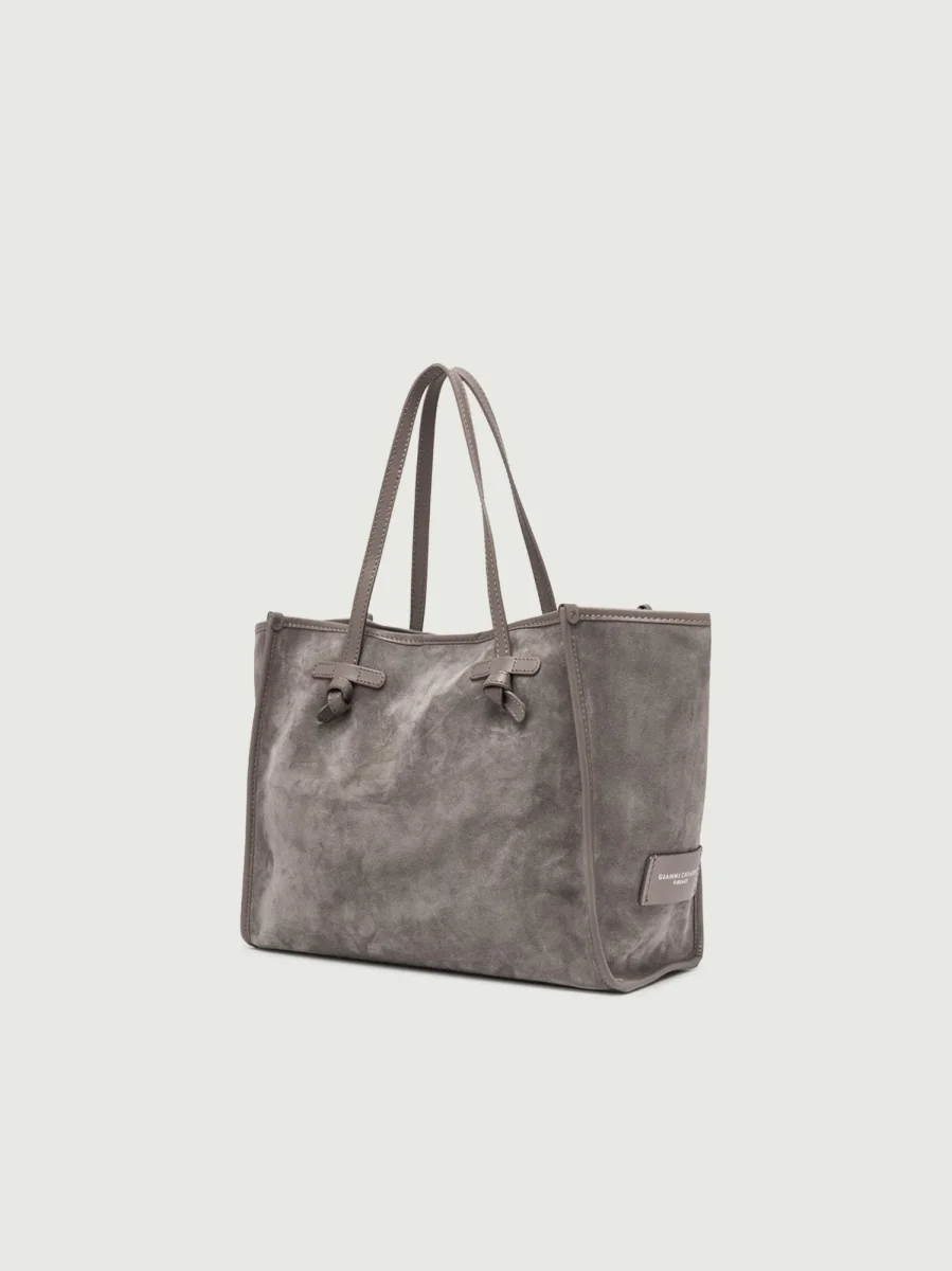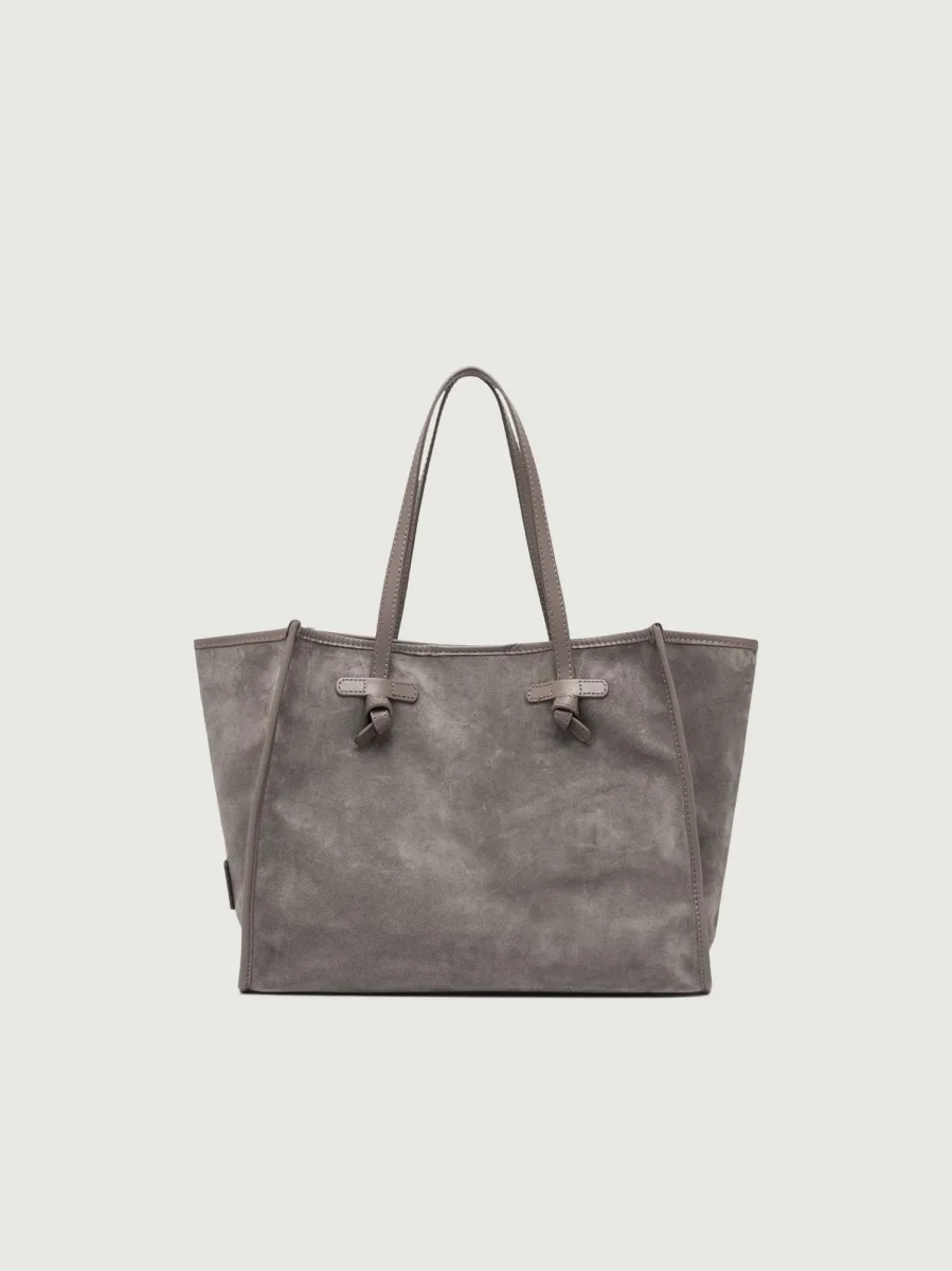 Shopping Marcella Tote color grigio chiaro in pelle scamosciata.