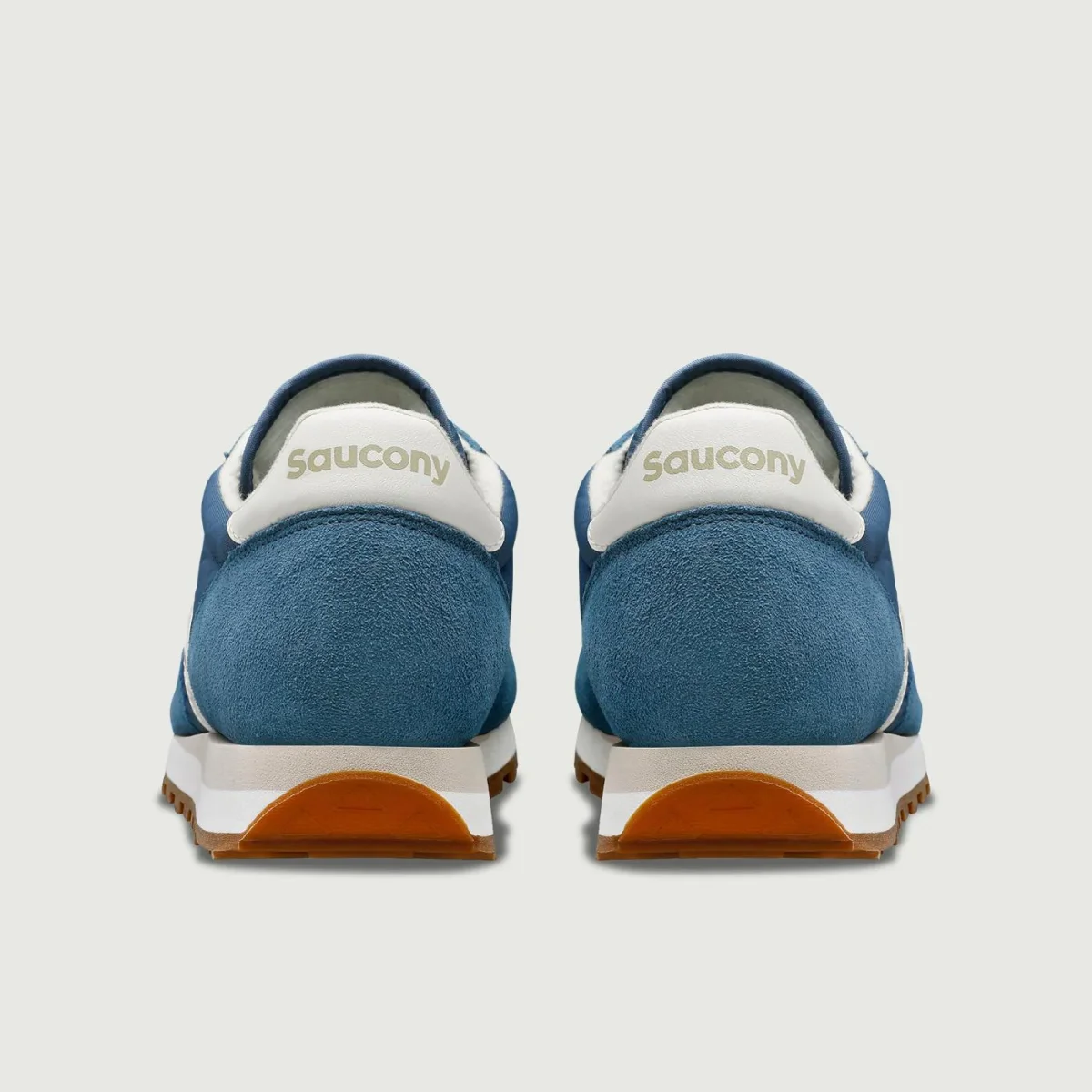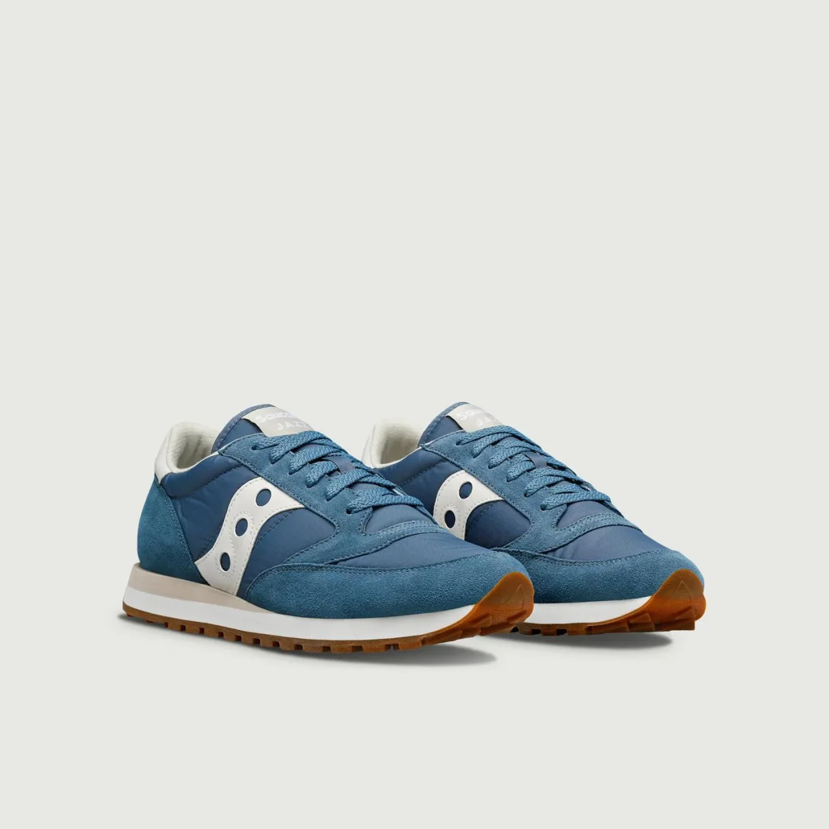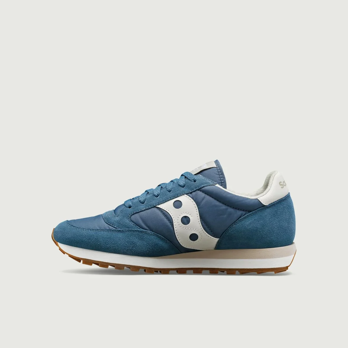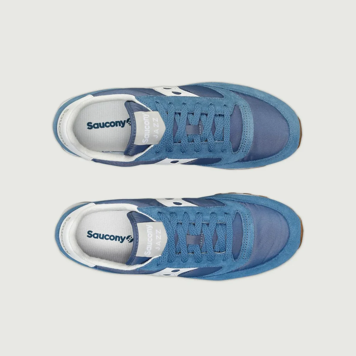 Sneaker principe della collezione saucony, il modello jazz è iconico e nasce nel 1981 dall’unione della avanzata tecnologia running con uno stile contemporaneo dal gusto casual. Realizzata in pelle scamosciata e nylon di qualità in una variante colore estremamente versatile blu con inserti bianchi. L’intersuola in eva garantisce una eccellente ammortizzazione, assorbendo i colpi subiti e attenuando gli urti. La suola in gomma con il motivo triangolare garantisce stabilità e trazione. Fodera in tessuto, soletta rimovibile.